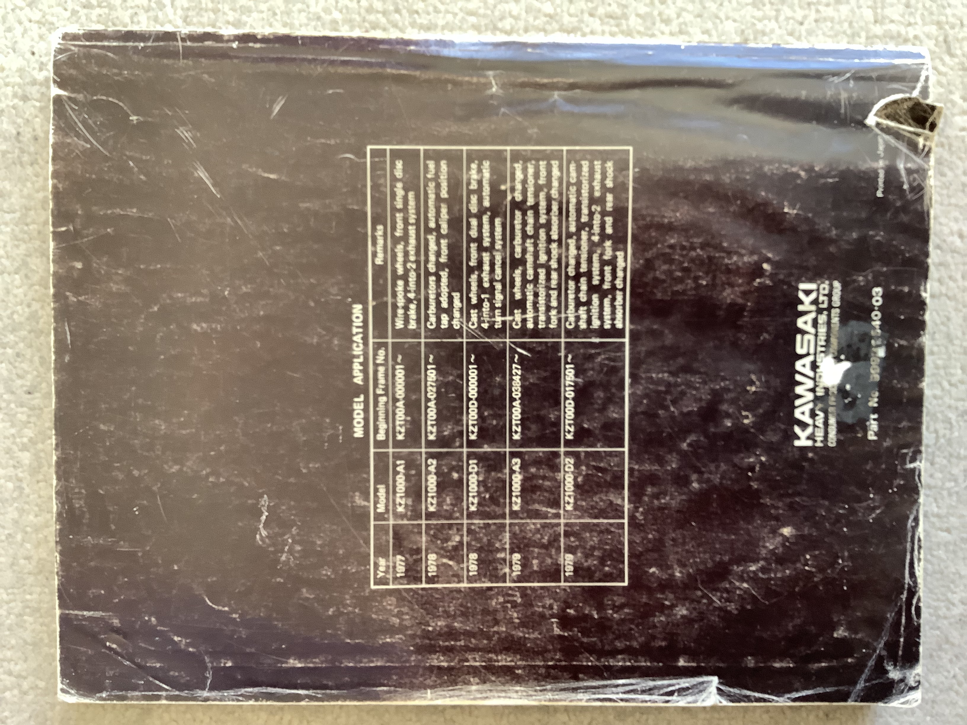 the MOST elusive of all Z1-Z1000 factory manual jobbies Mike, there are incremental versions from the scarcest; the first edition (1976 ISSUED) Z1000 A1 ONLY, to the later, annually, updated versions which also covered the A2, A3 and A4 Z1000s.knowing you Mike you'll WANT a 1st edition or maybe two!? one for the garage AND one for lounge reading??