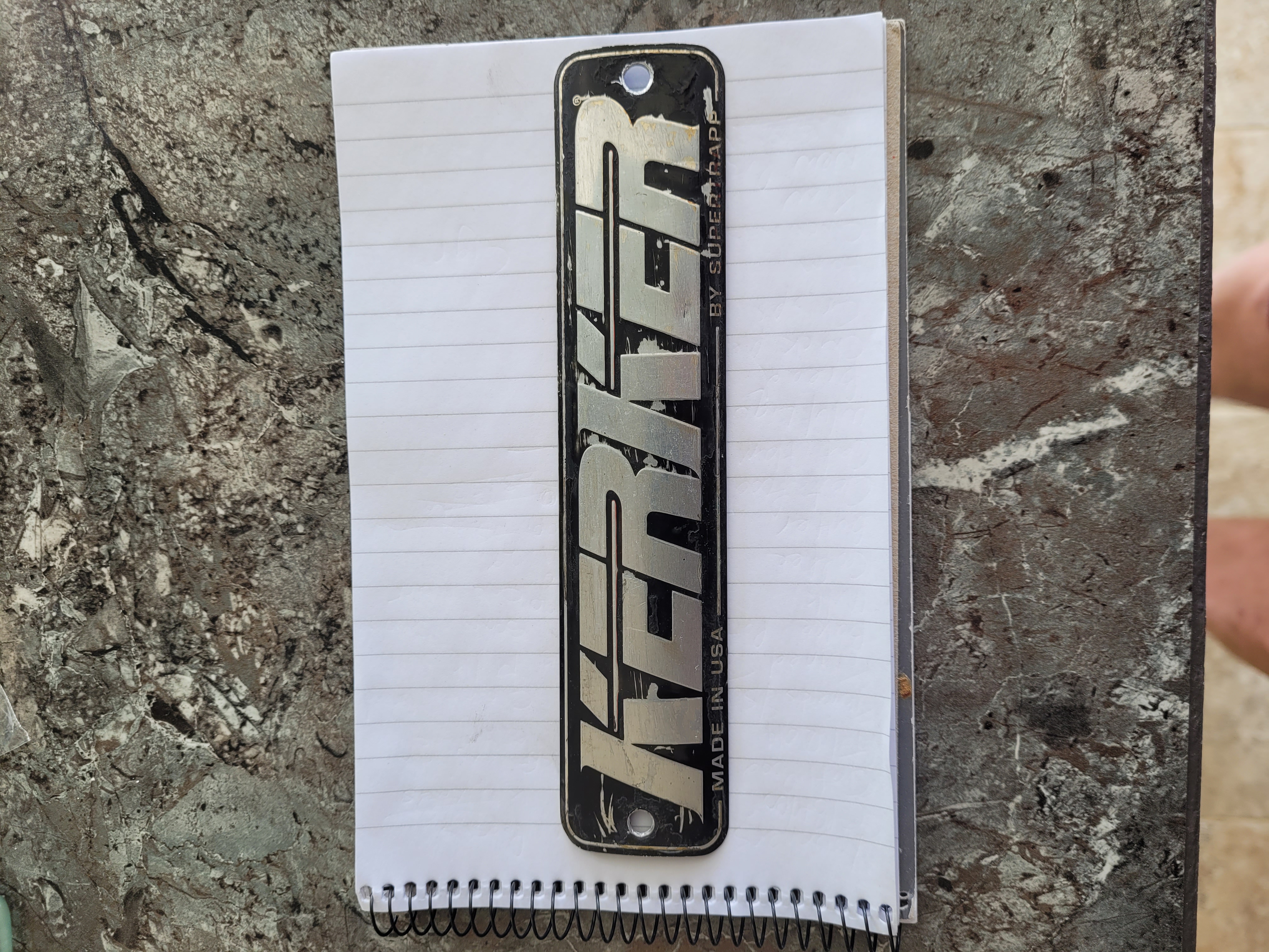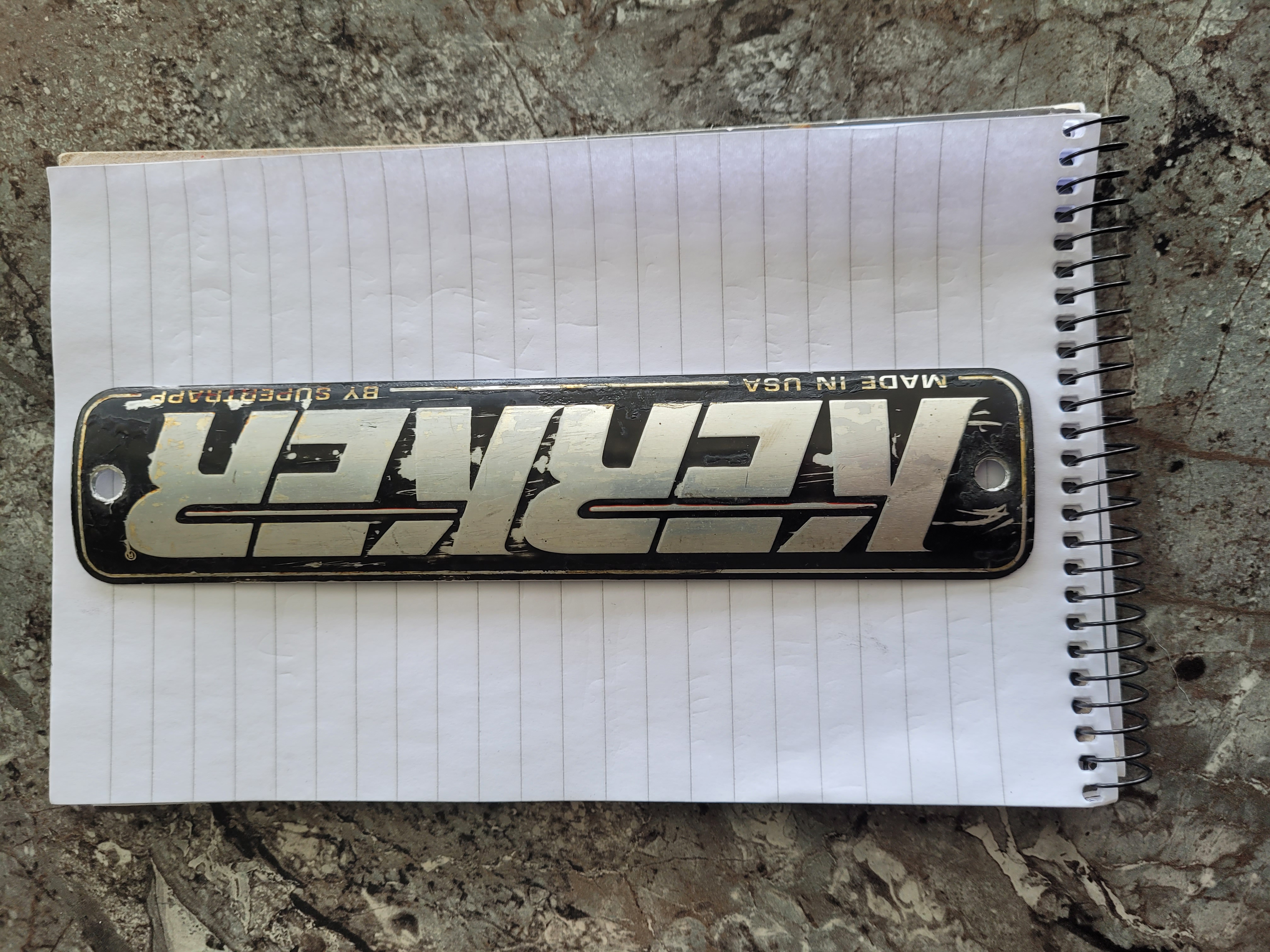 Looking for the metal badge screwed? ( riveted?) to Kerker silencers.