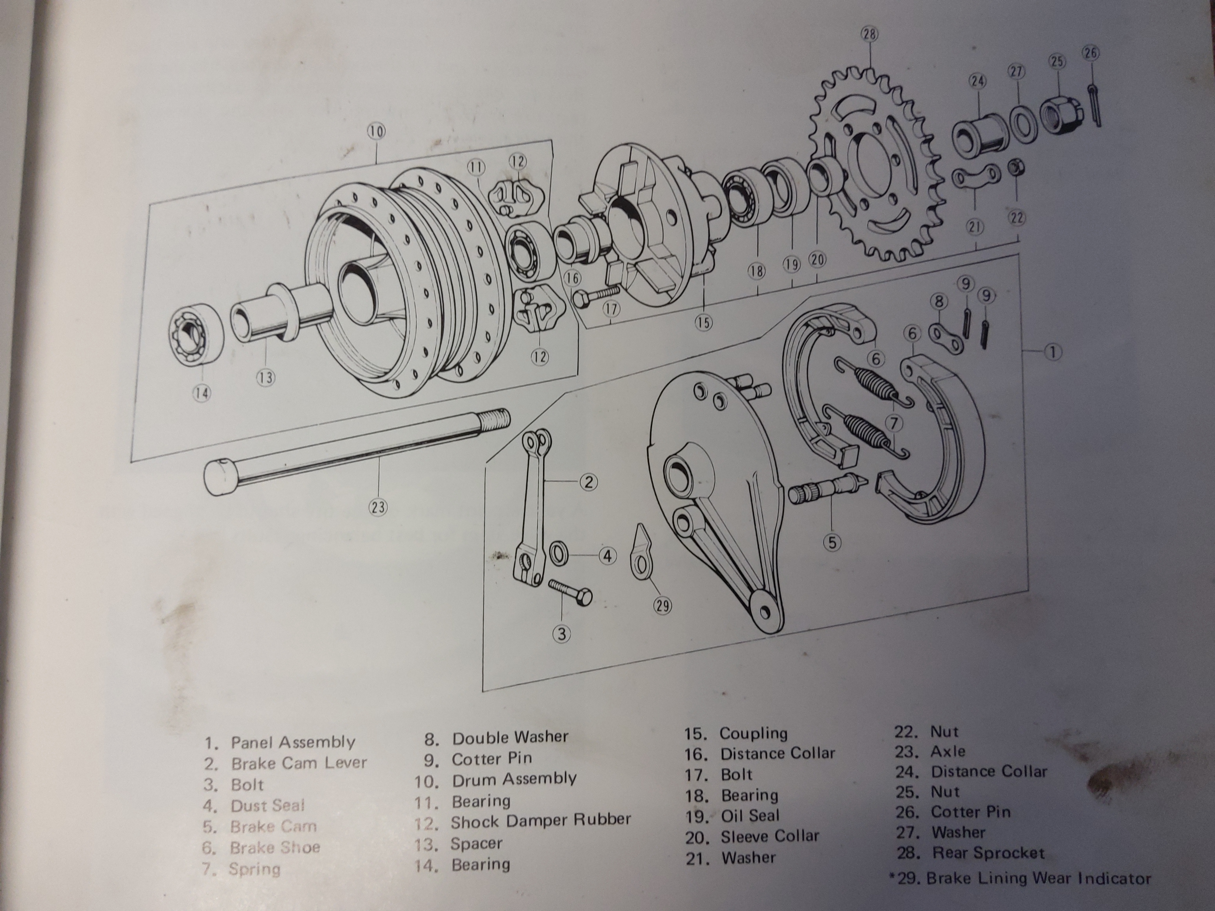 Just about to loose fit the rear wheel on my Z1-B and just checked the workshop manual to ensure correct orientation and found that the photo's and the schematic don't agree! IIRC, and noting that I did strip this bike down 43 years ago so my memory may be playing tricks, the castle nut was on the sprocket side. I've attached the relevant pics from the manual. This is the official Kawasaki Shop Manual, Revision 3, July 1974. Can someone confirm which side the castle nut goes please?