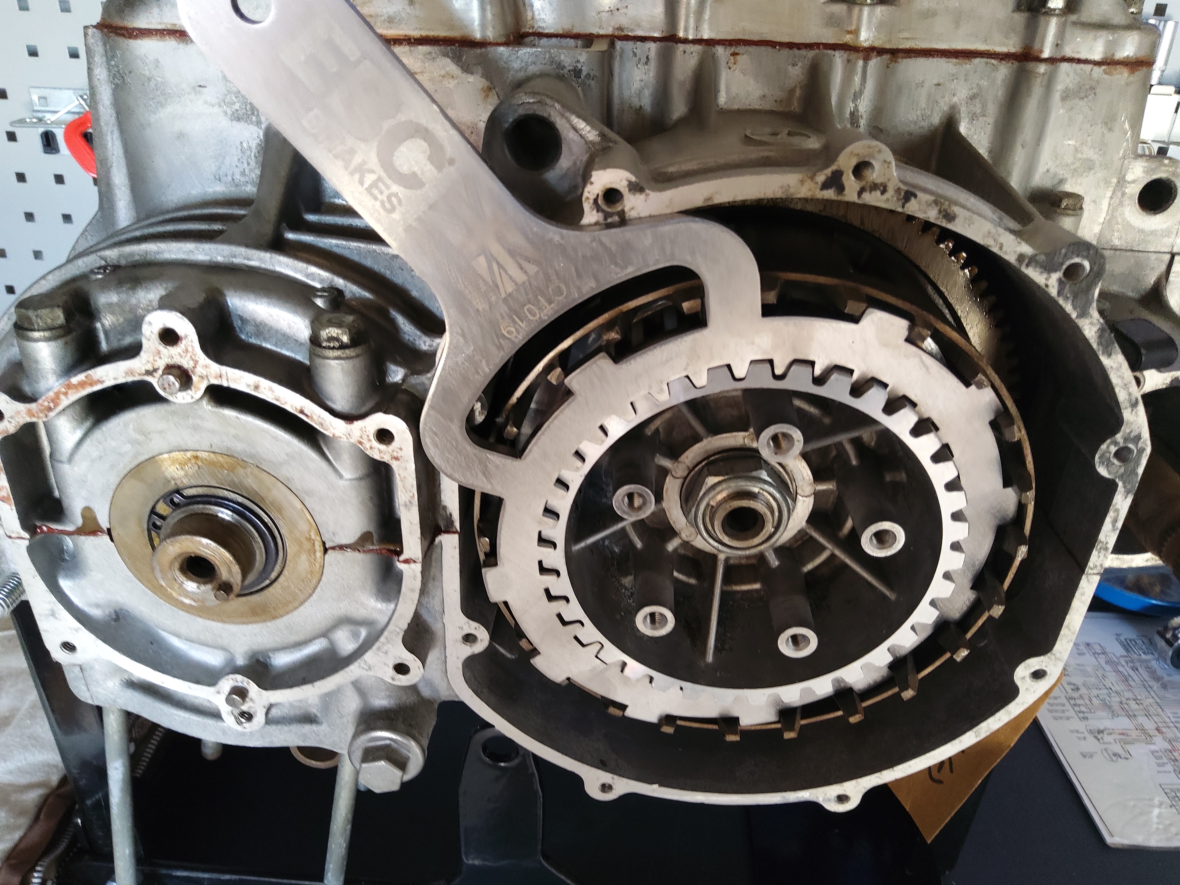 Just starting on the engine rebuild and when I came to the clutch found it doesn't fit due to the fact that the basket is depressed into the casing but the tool is completely flat (see pics). Am I being a numpty here and is there a correct way to use this tool that I haven't figured out or has anyone used the same tool and found a way around it being too flat!