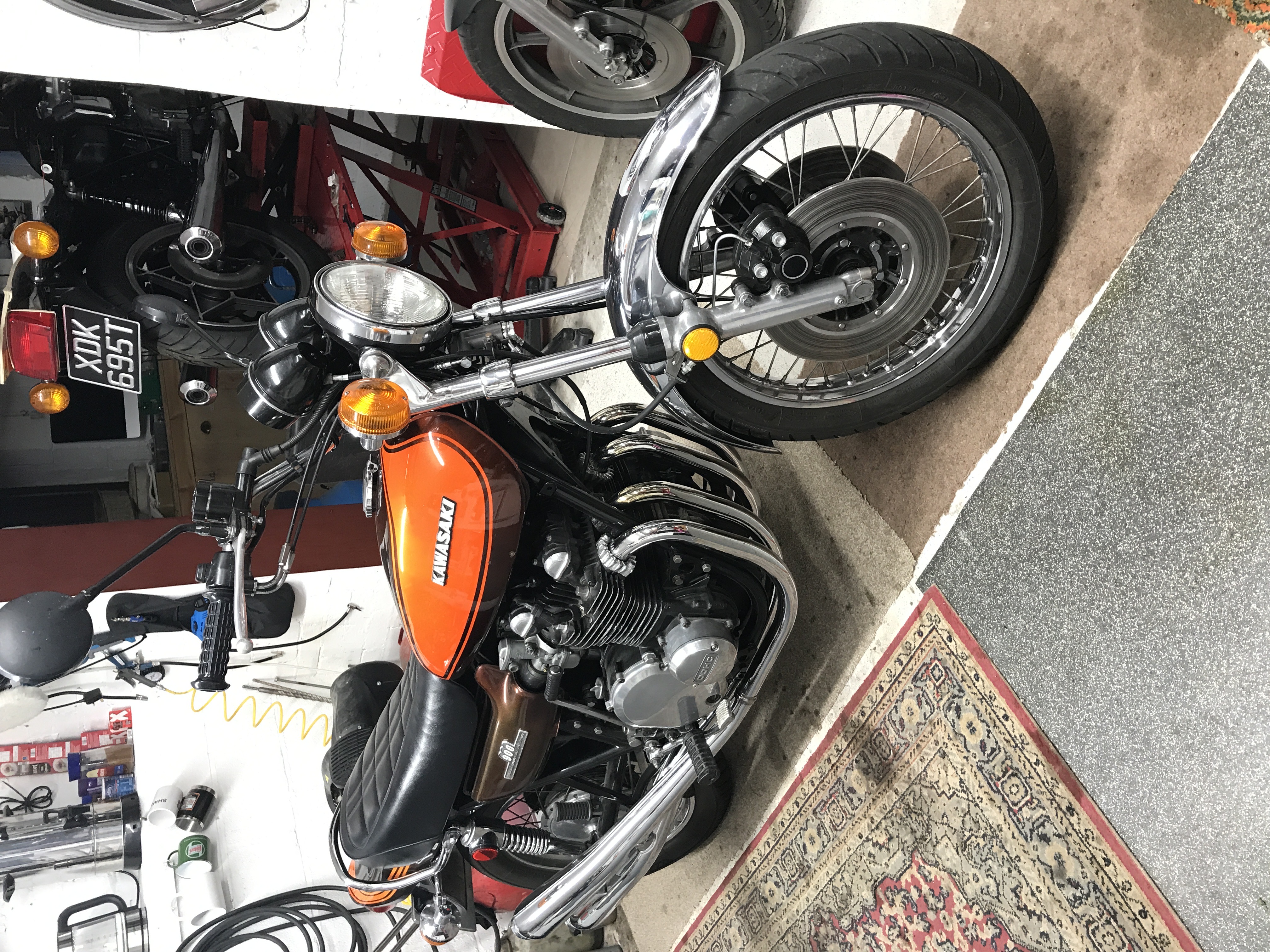 Andrew_s wrote:Yep, always nice to be able to stop better and looks nicely balanced - this is my mate Dave's Agrati imported 73 UK Z1 (now sold) with what is believed to be the factory set up.