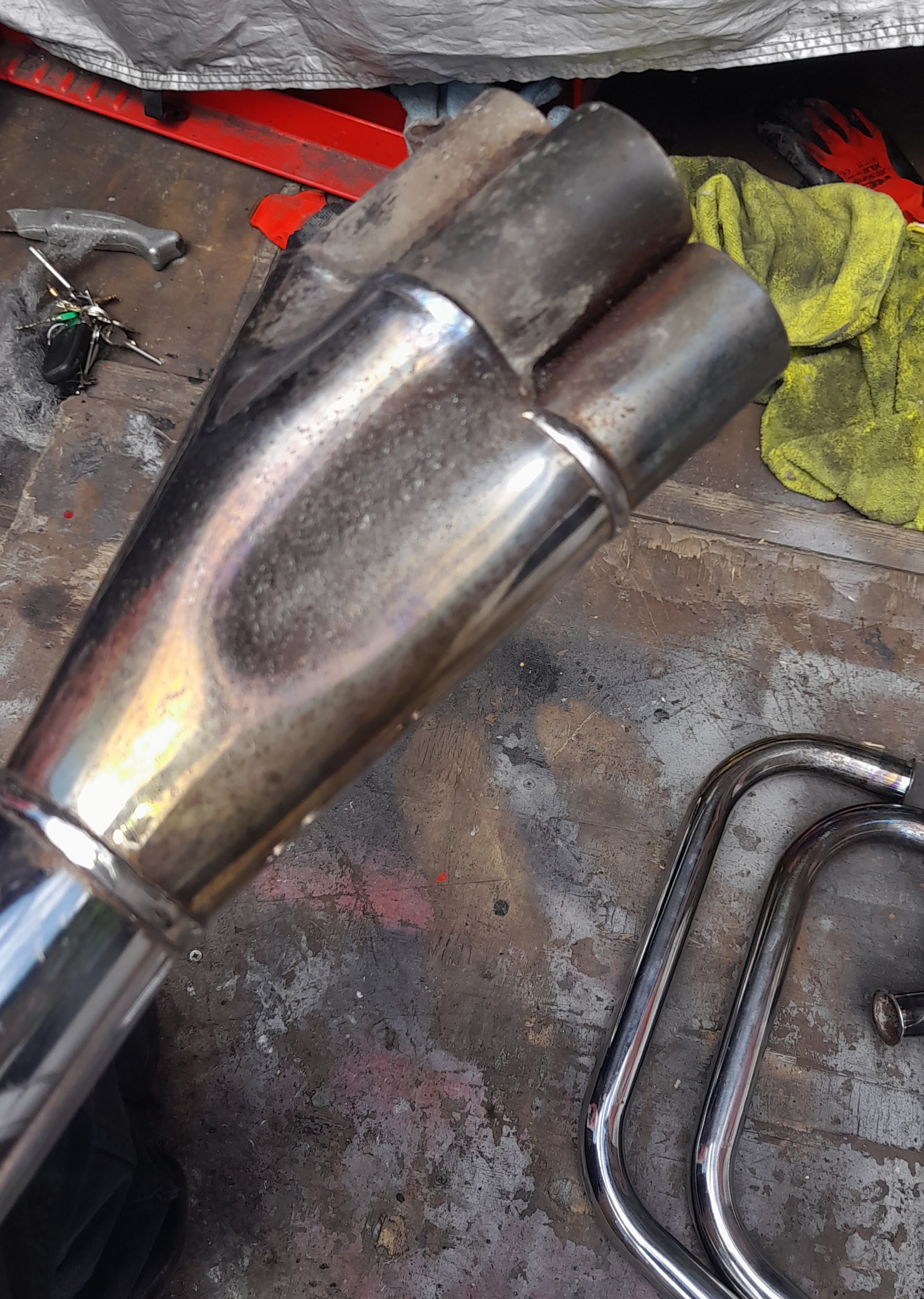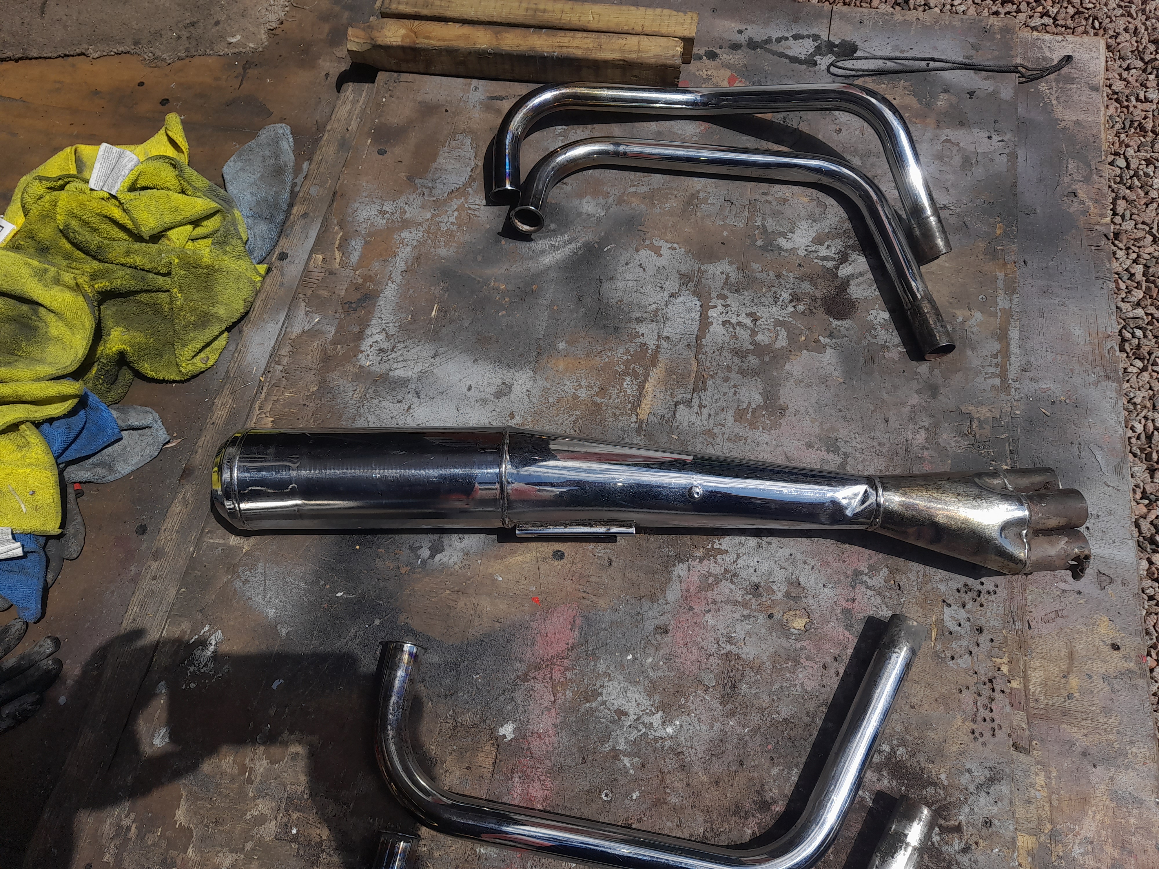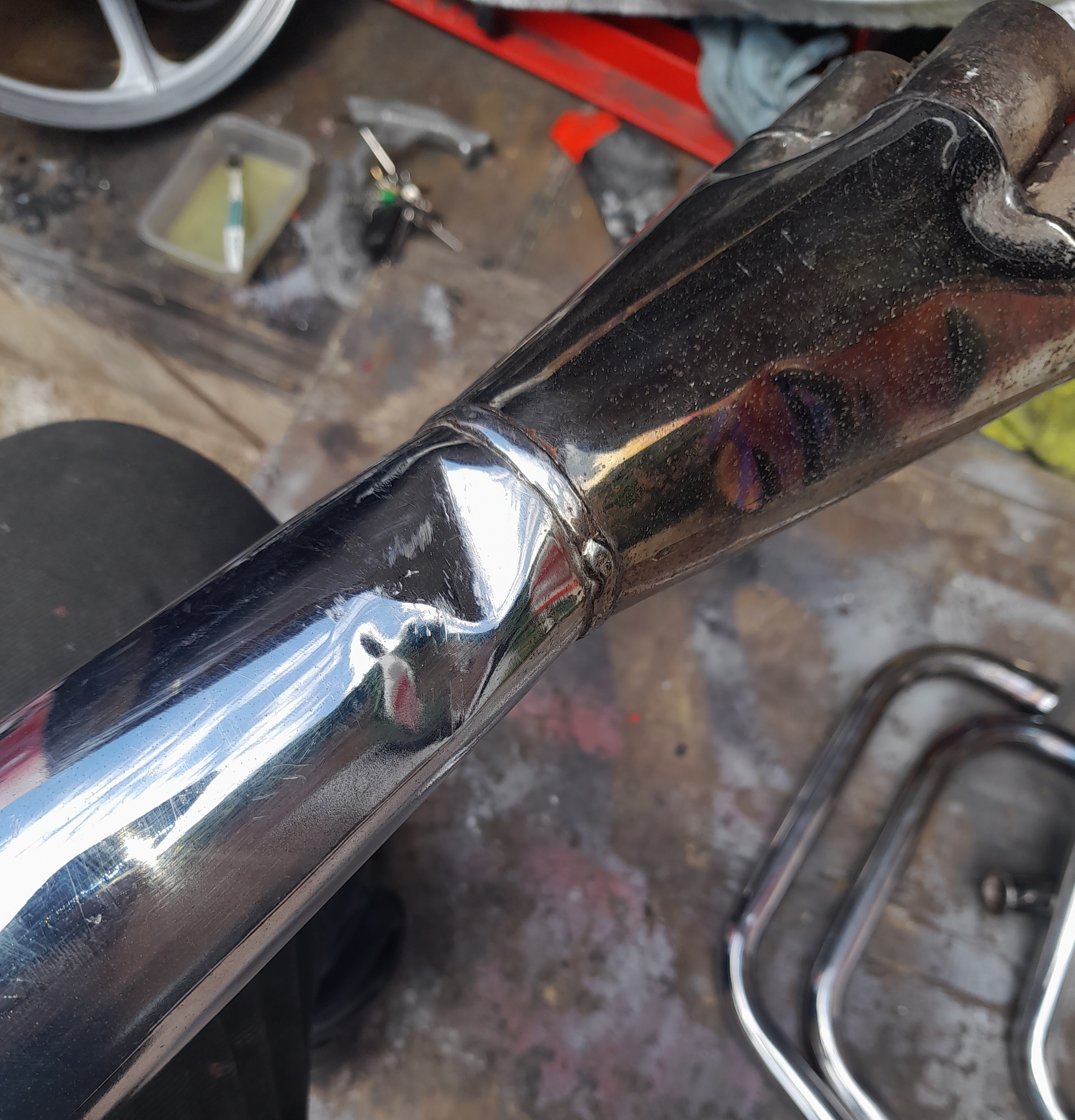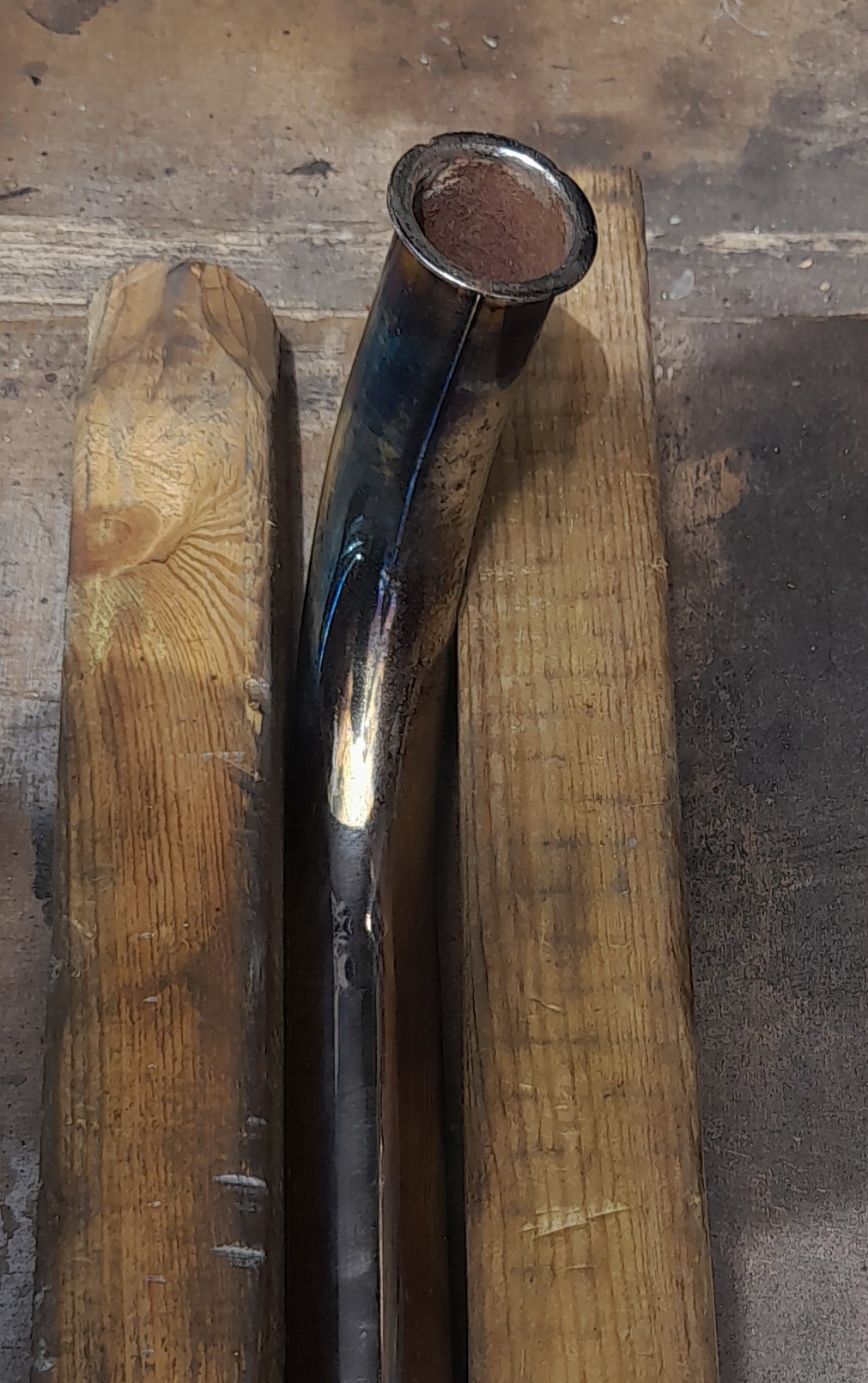 After an hours cleaning. There is a ding under the collector box that won't show when mounted. Plus the pinch bolt is mishappen. The underside of the header first curve is rust free. There's someone after it from another forum but may fall through. Who knows?