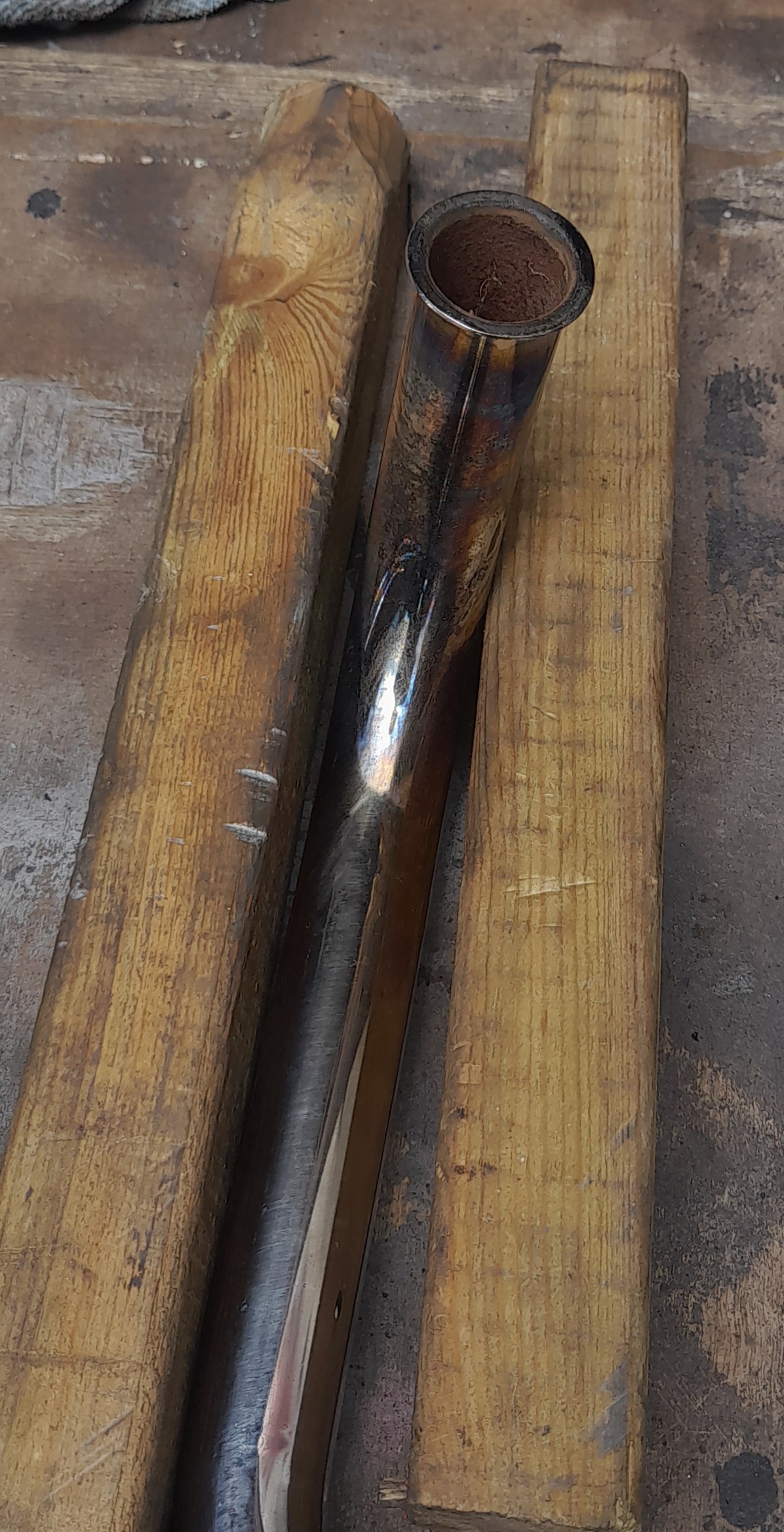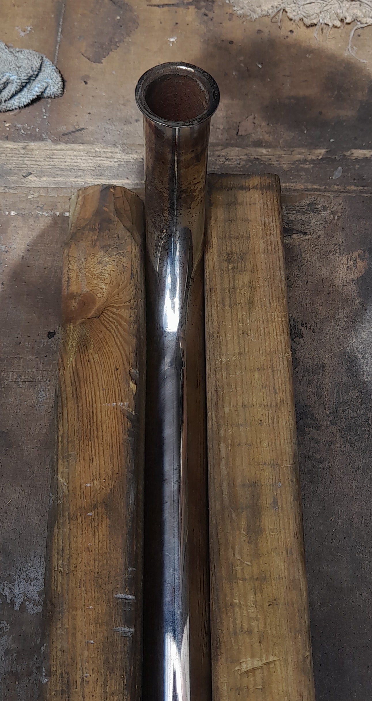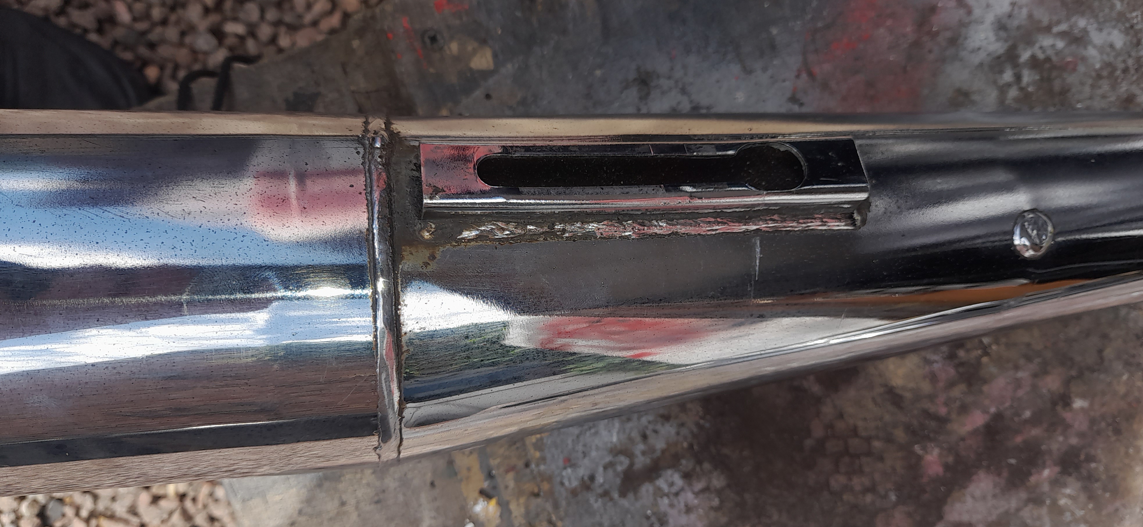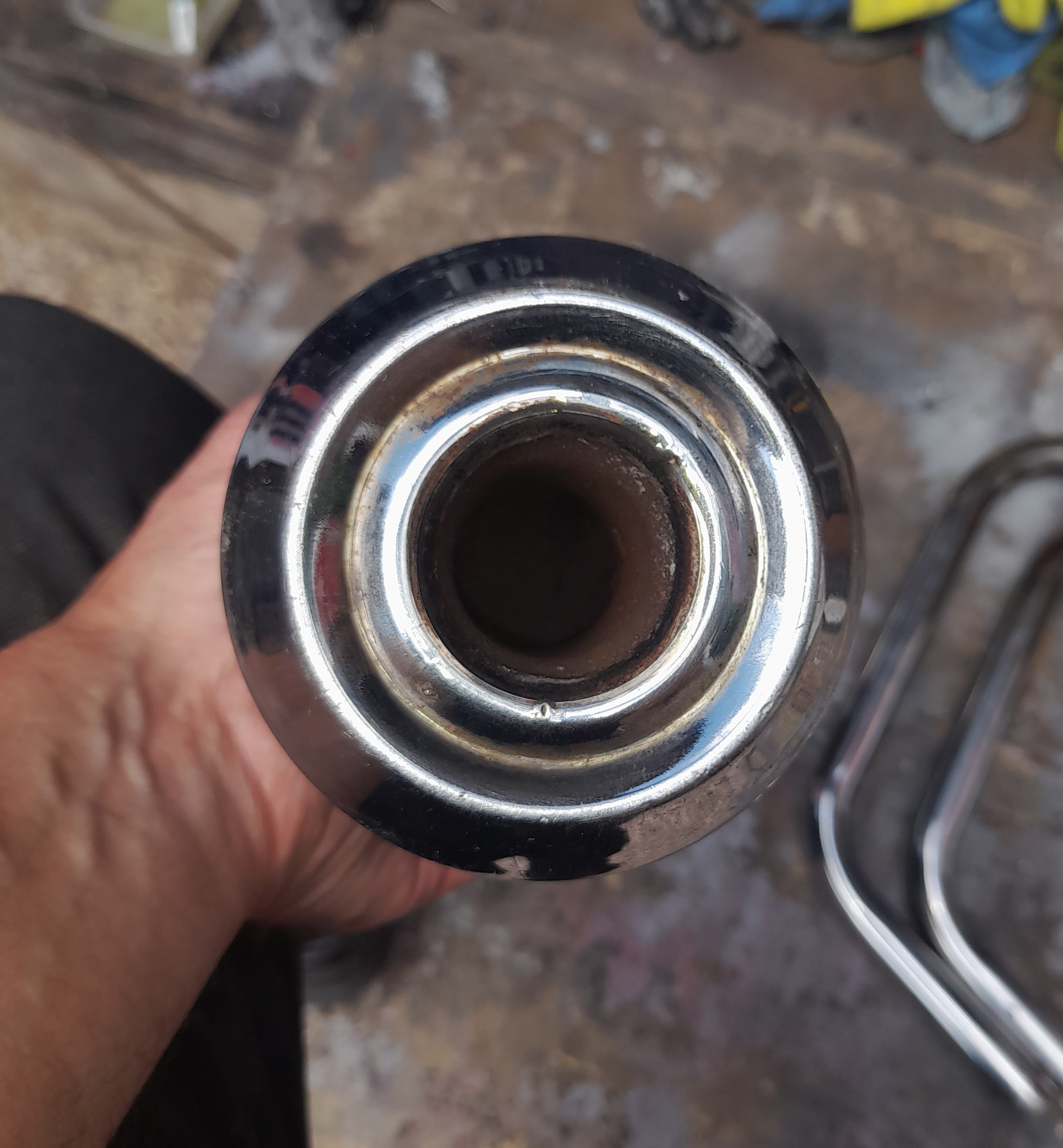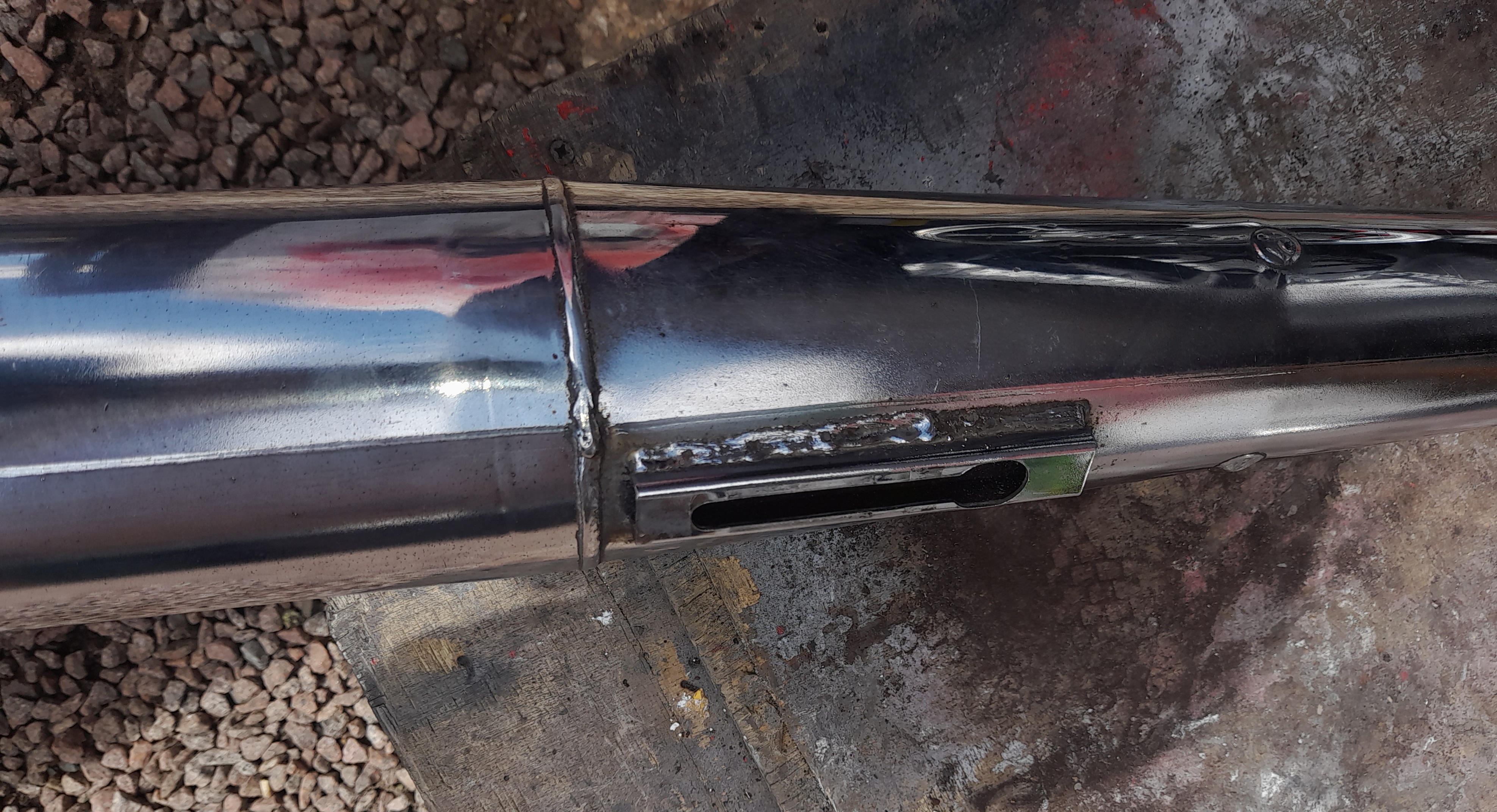 After an hours cleaning. There is a ding under the collector box that won't show when mounted. Plus the pinch bolt is mishappen. The underside of the header first curve is rust free. There's someone after it from another forum but may fall through. Who knows?