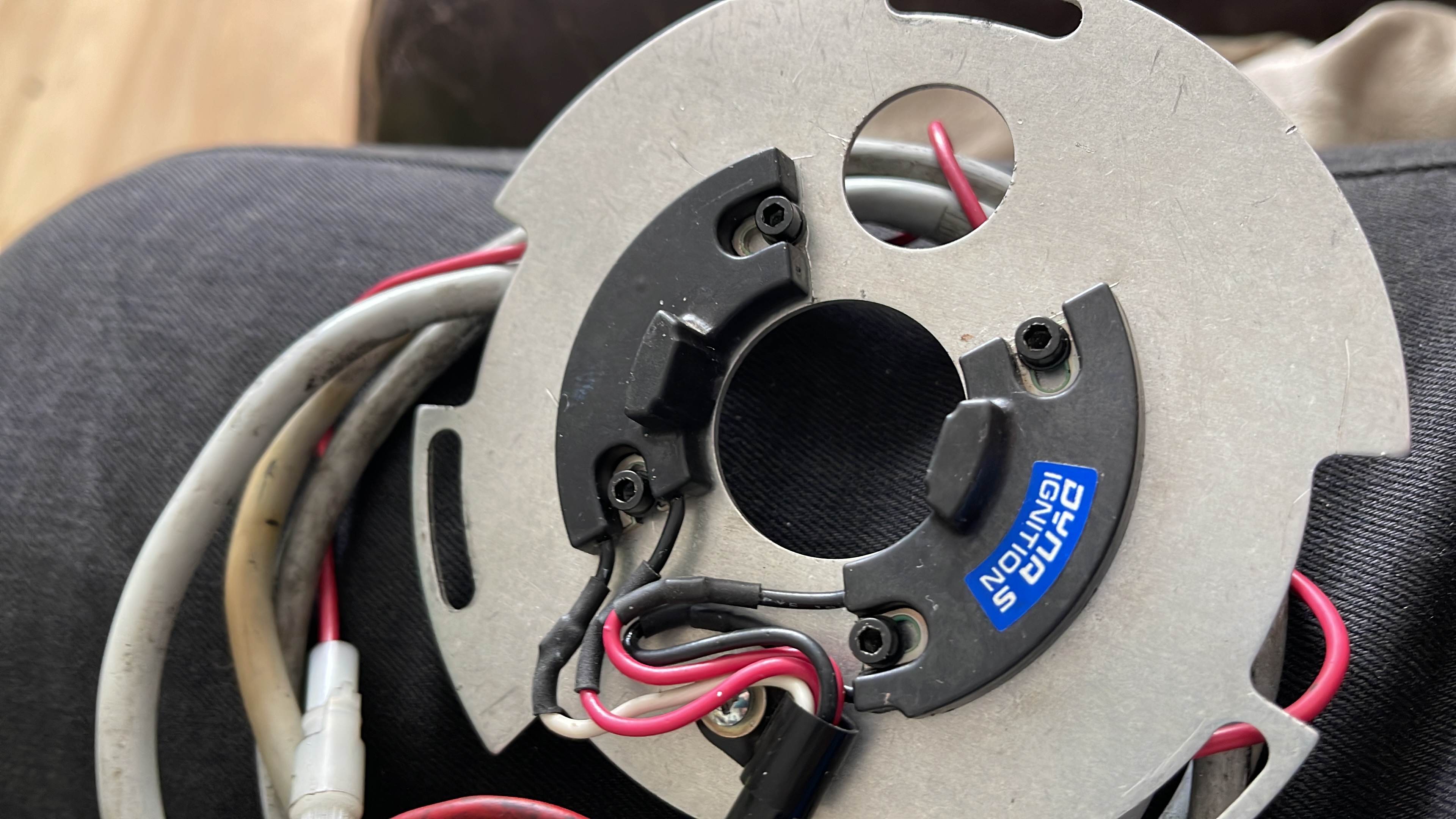 Hi,I have a Dyna s on my st today I decided to static time the ignition as I originally set it up loose ,when I connect up the bulb on 1 and 4 coil the bulb comes on immediately and stays o o met where I position the backplate it’s now doing my nut in