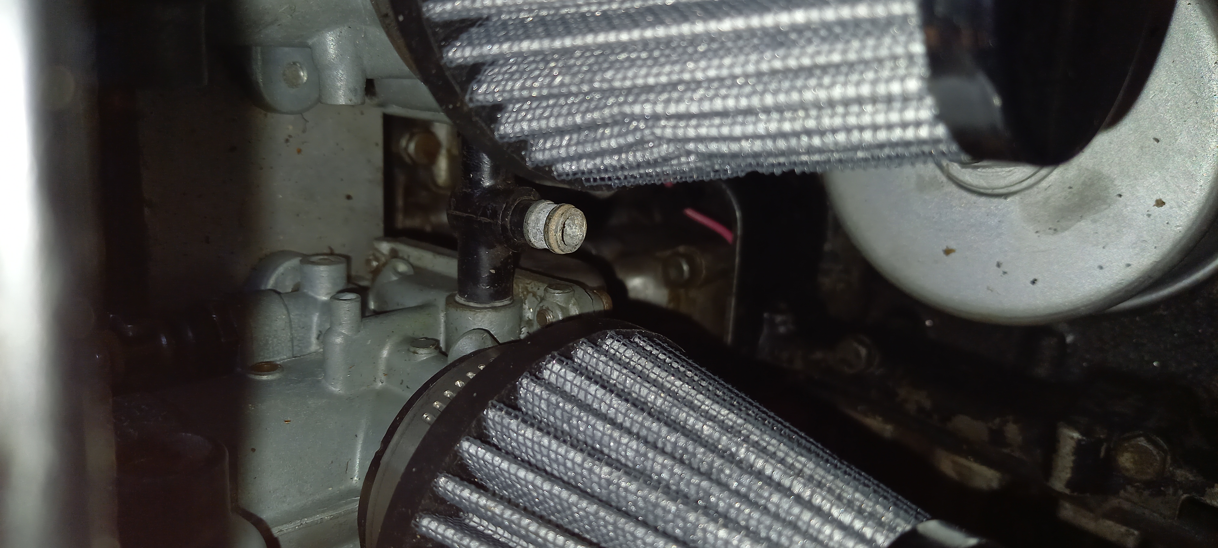 I've checked the fuel flow through the 2 outer inlets, if that's a thing?, and nothing comes through the centre one. Popped a fuel line on the centre one and it went nowhere. So at some point in its previous life someone has put this t piece in.... God knows why? Maybe just to wind folk up!!