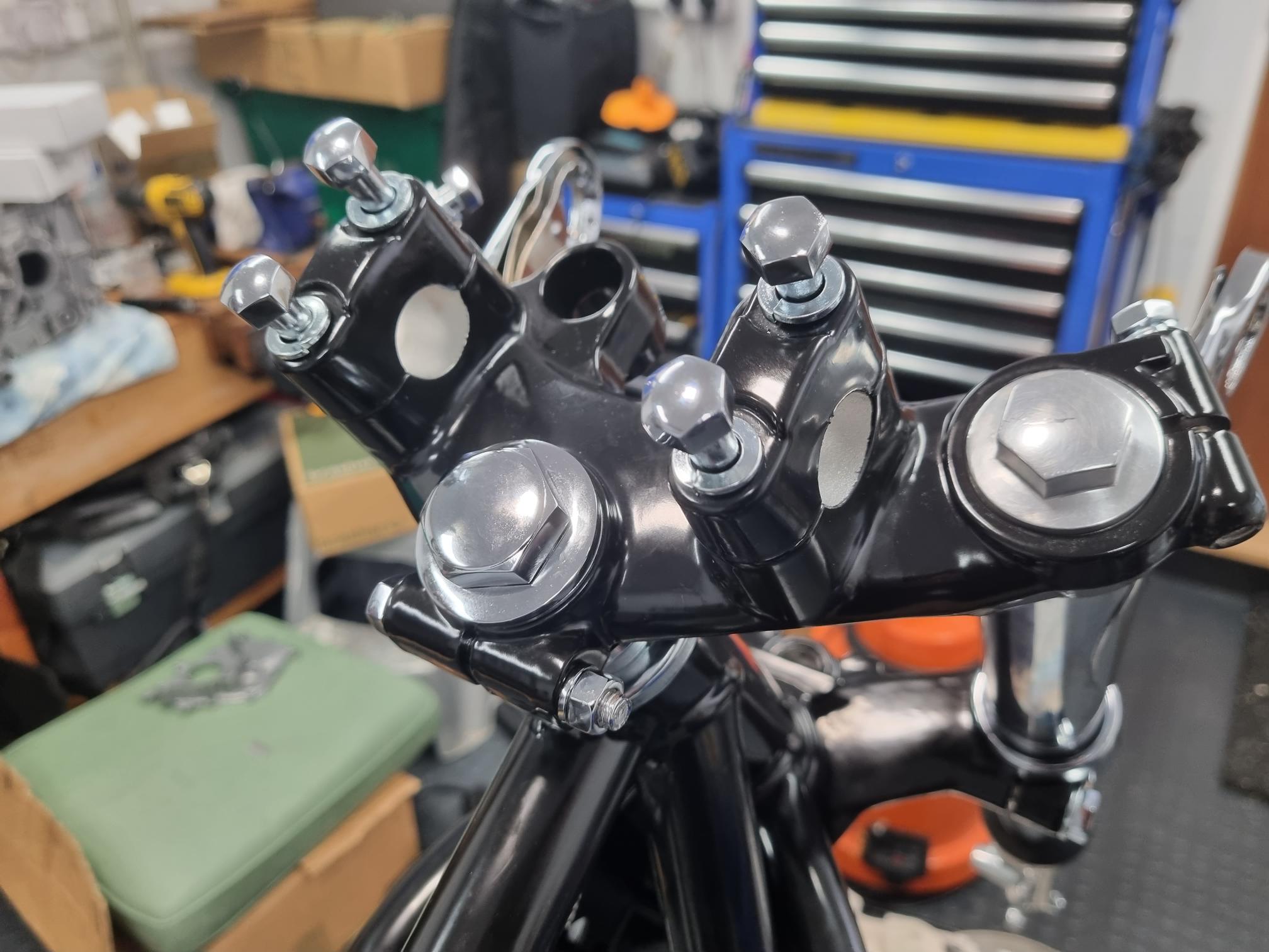 As you can see from the photos I have reassemble the forks and fitted them but I don't seem to be able to find any information as to torquing the main/ central stem bolt. As its tightened it clamps the head light brackets down onto the damper rubber rings / lower yoke. I'm guessing it's not too important as long as the brackets are held reasonably firmly but thought I should check.