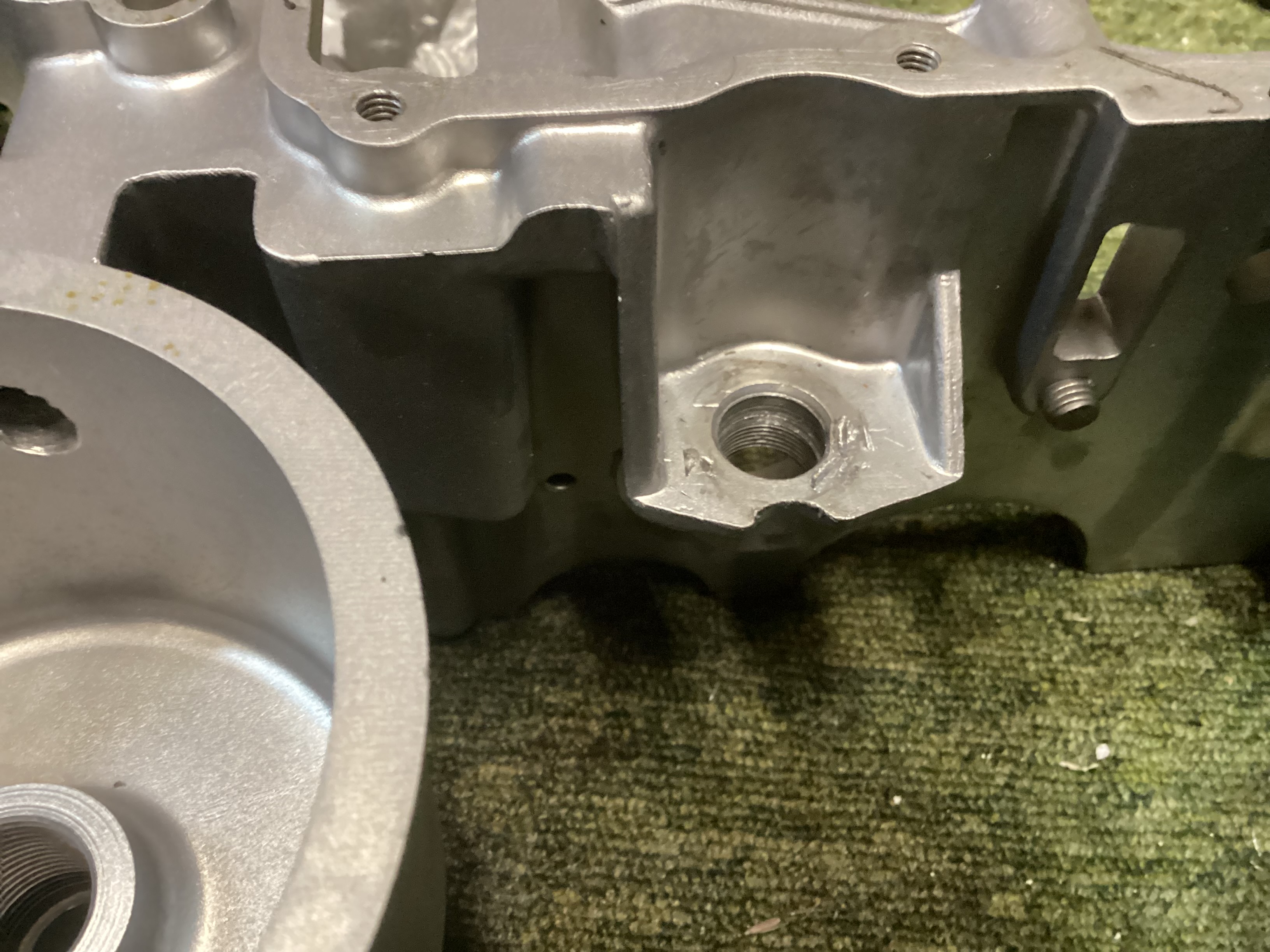 Al wrote:I might be talking out of my hat here because i dont know the early engines but the Z900 manual shows a differnt 'bolt' (two stage bolt with spring and ball) in the aluminium boss you have pictured. This 'two stage bolt' appears to have a fine thread and the bolt (single head you have pictured) appears to have a coarse thread. The manual pictures are ambiguous but is it possible that you have the wrong bolt in there which caused the thread to strip??