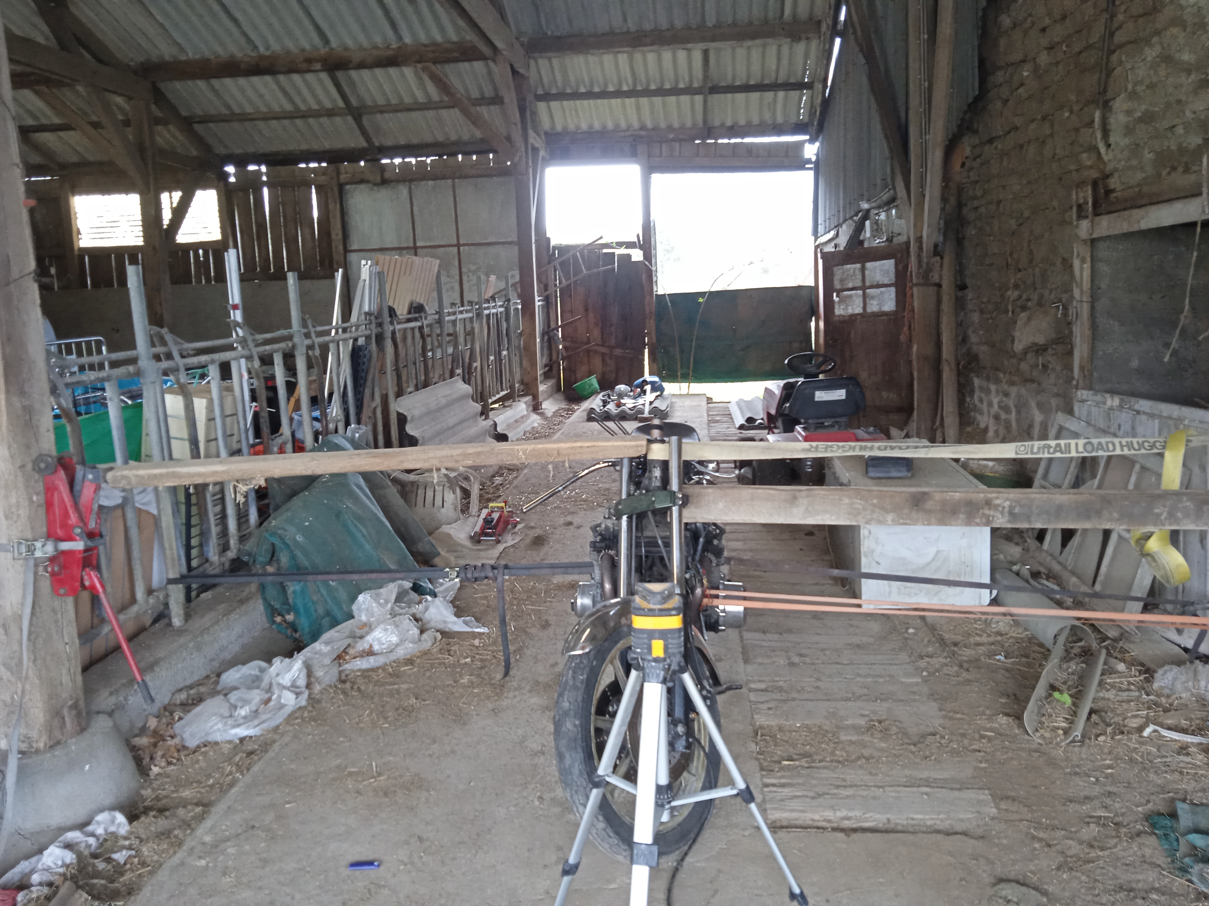 Did some more today. Couldn't improve it any further with a jack alone because no matter how many straps were attacked it was tilting the bike and lifting the rhs of the ctr stand..