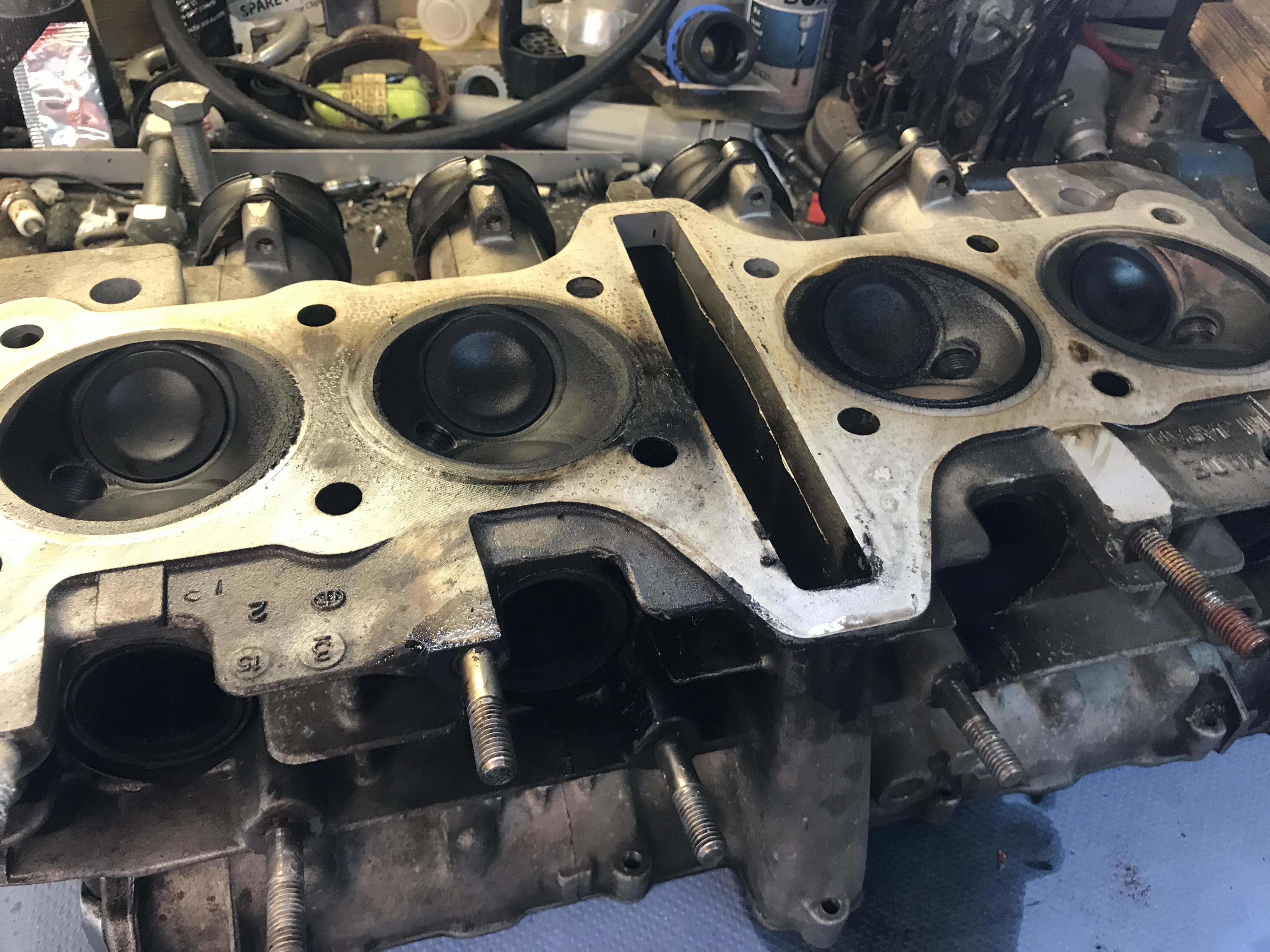 Good morning engine experts. I am helping a friend with a Z1100 (shaft) that keeps burning holes through its head gasket. It first happened soon after he bought it, between cylinder 3 & 4. The head was then re-faced and reassembled with a new Cometic gasket. After poor running issues were reported again I took the top off again and found it's burnt a hole between cylinder 2 and the cam tunnel. Its probably only done about 500 miles between the two events.