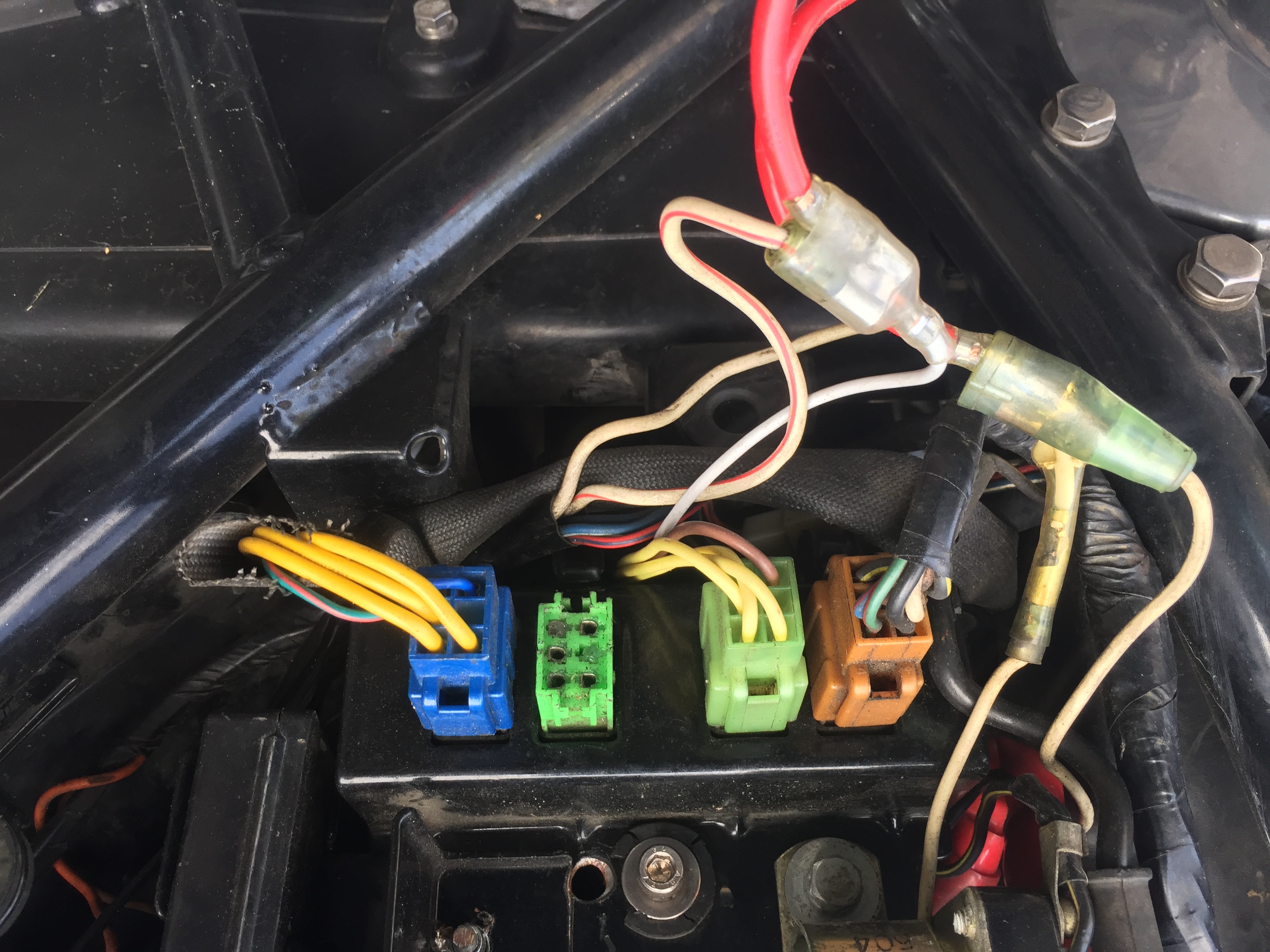 DavidZ1R wrote:Think you have the white wires wrong, you should have the white feed from the battery with the double joint, into that goes white/red wire from the fuse box, and the white wire from behind the solonoid into the double joint, the other goes to the white feed wire from the reg / rec, that's how mine goes, no problems