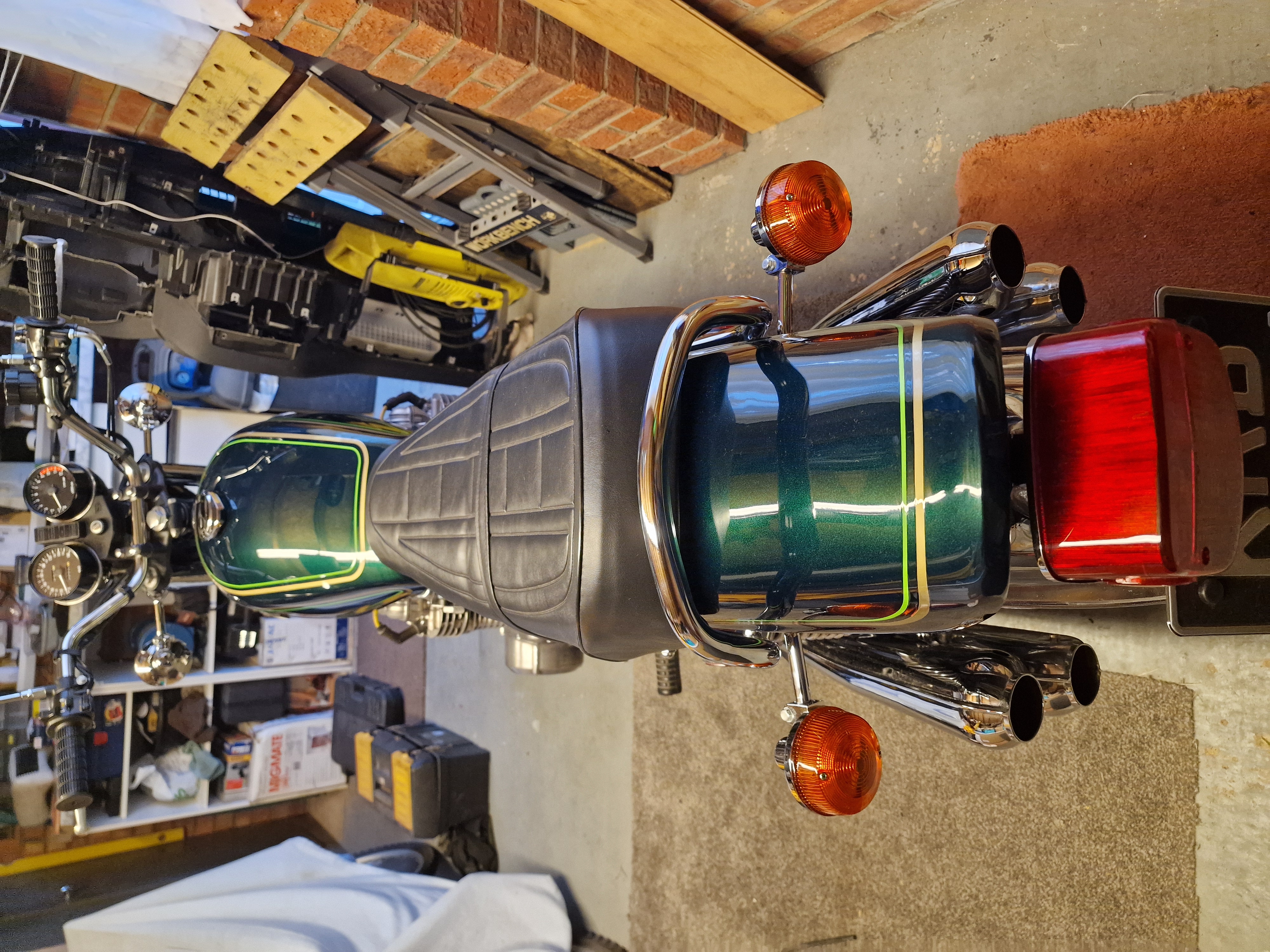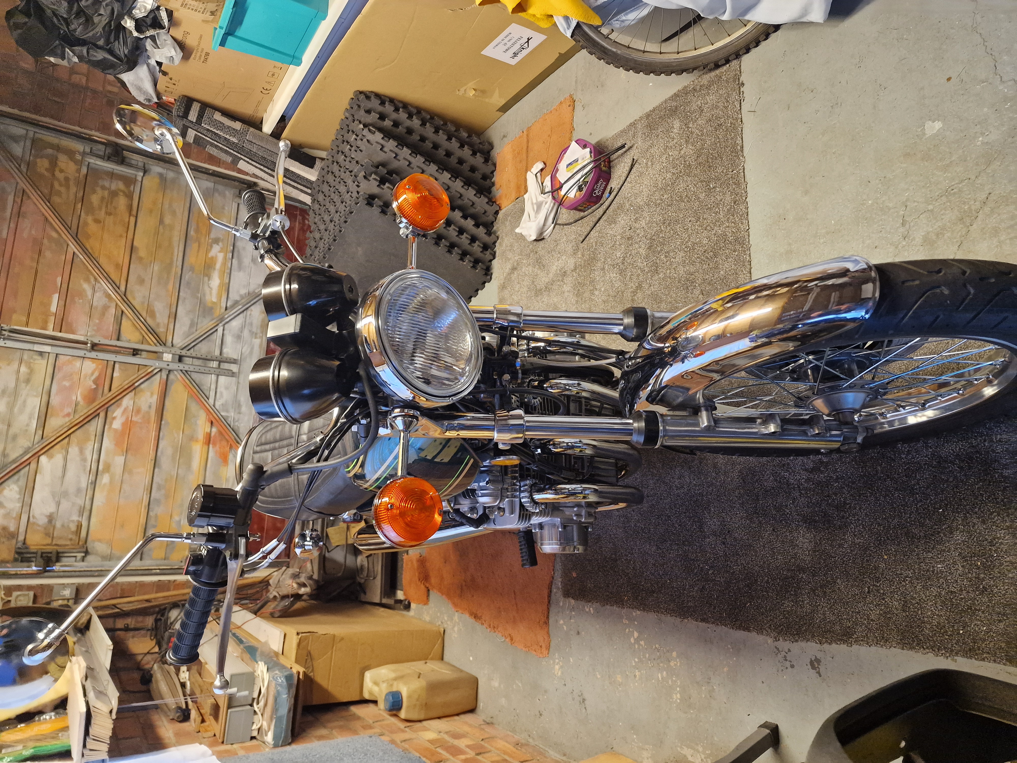Thats a very good point about tyre pressures they are modern tyres will try increasing pressure as you suggest, to me it felt like it was almost going to fall over in the corners and i wasnt going that fast, that said i re built a Suzuki GT750 had 1 in the 70s and it handled terrible, wallowed and wasnt stable back then TT100 front and Avon Speedmaster rears were the tyres of favour, when i rebuilt i fitted Avon Roadriders, it handled superbly for a 40 year old bike. The Kawasaki has had the needle roller swing arm mod and new front steering bearings as well as tyres so hopefully that will improve withextra PSI, as for checking carbs for air leak thats exactly what Nigel suggested, will have to get some easy start. As for checking plugs at 1/4 and 1/2 throttle thats not so easy as it takes a while to assess. I did remove them after starting it and ran it for several mins till it ran off choke then checked they they were black and sooty but guessed that was as it was a rich mixture for starting.