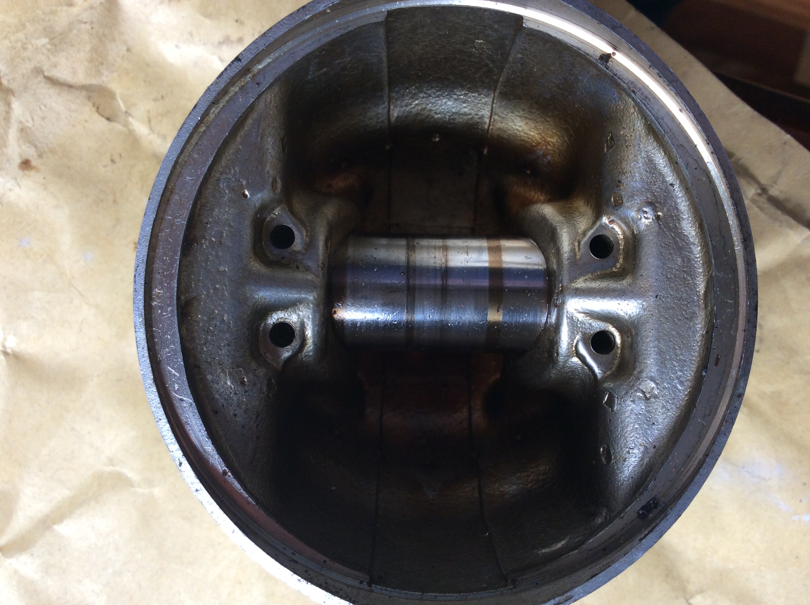 With any carbon on the top of the piston, it's very difficult to see any change in contours and texture hence request for picture underneath. Even then it's like the black hole of Calcutta looking up inside the motor.