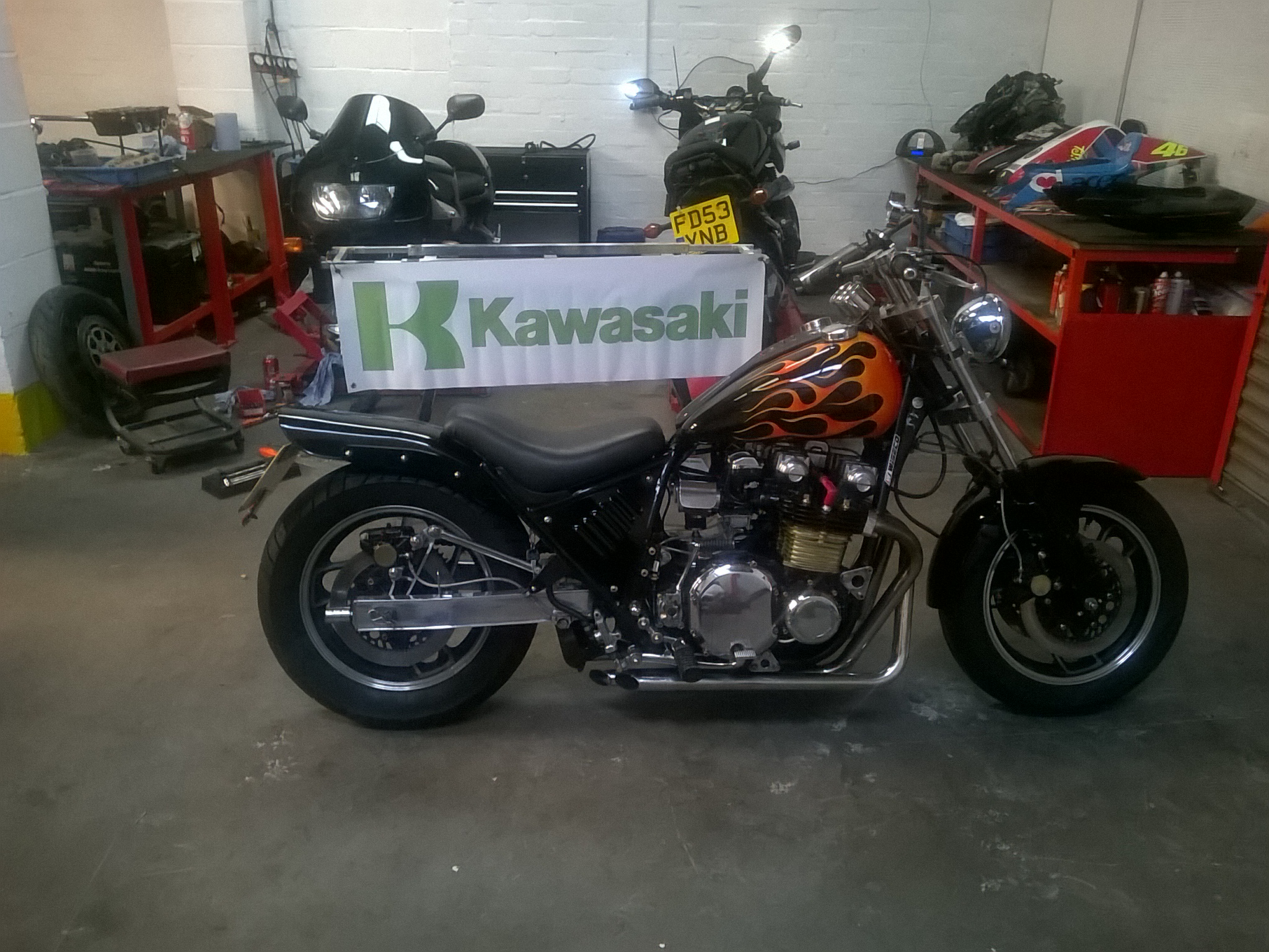 An expanding collection of parts pretending to be a Z1100R and a Yamaha FZ750