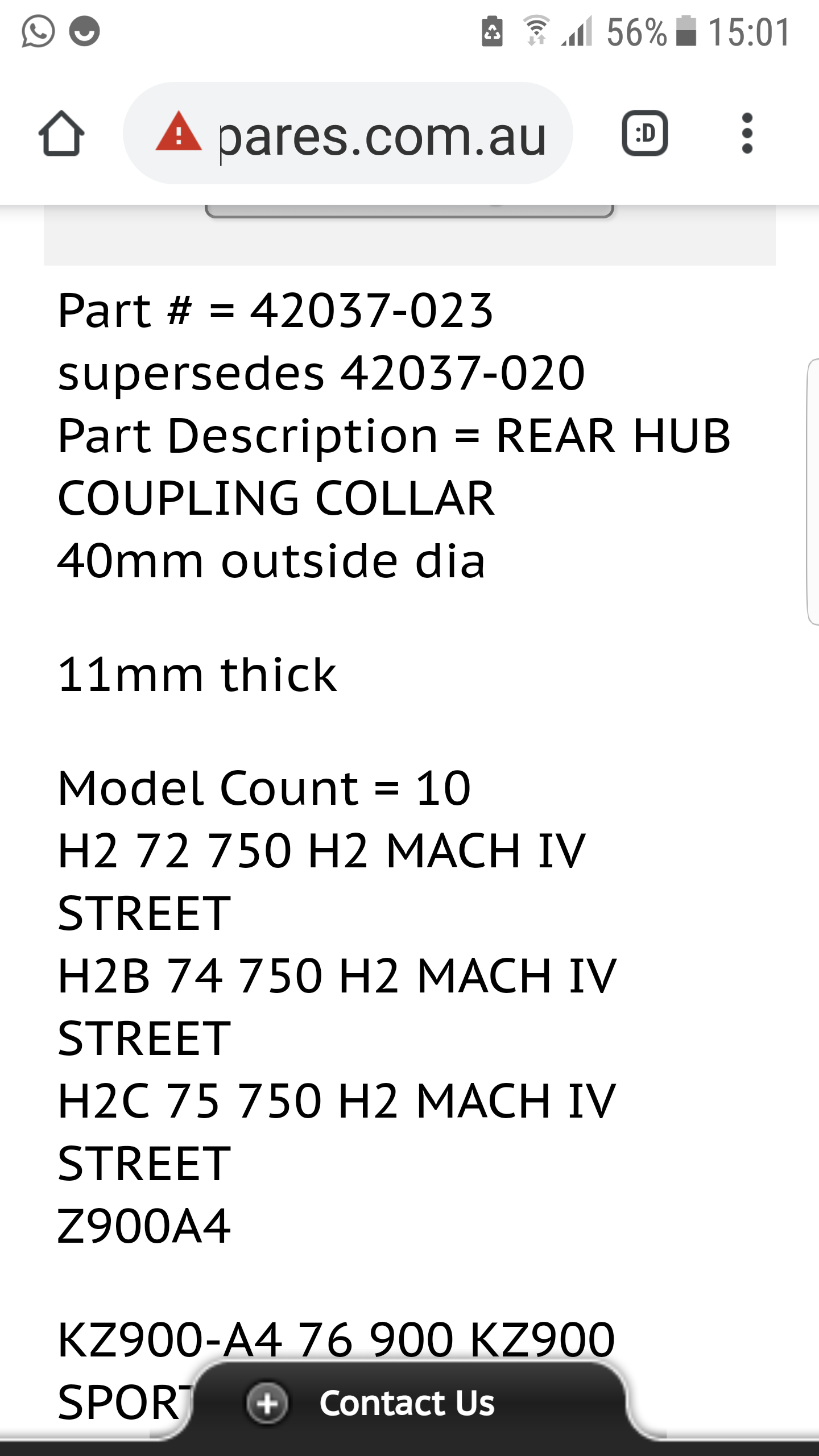 the spacer of a z900 is 10 mm thick (n° 42037023), the spacer of a Z1000 is 15 mm thick,(n°42032071) I think you have a Z1000 spacer.