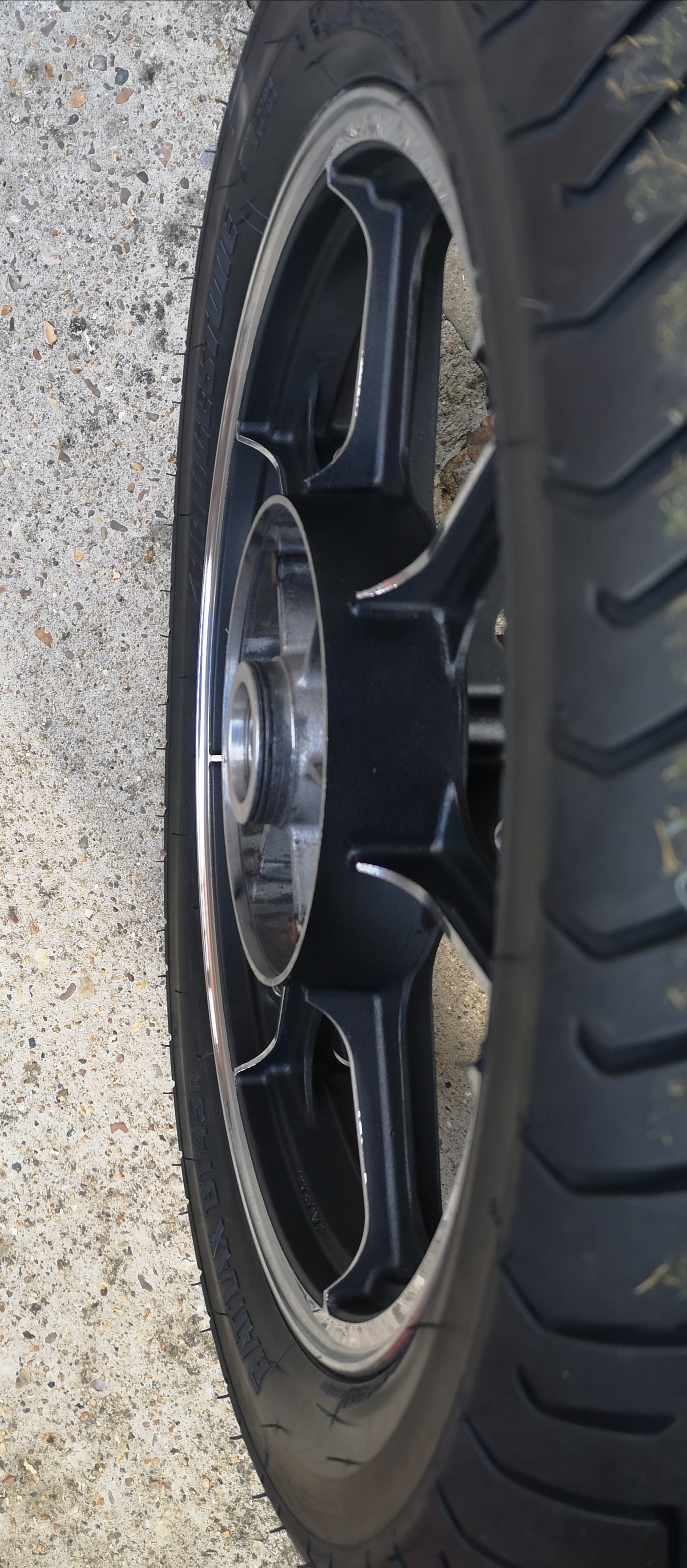 Pretty difficult to see from the pics but the raised line on the tyres are fine on one side of each wheel but disappear under the rim on the other side??!! (On the back tyre - where it says 'Bridgestone' and on the front where it says 'Battlax BT45') :angry