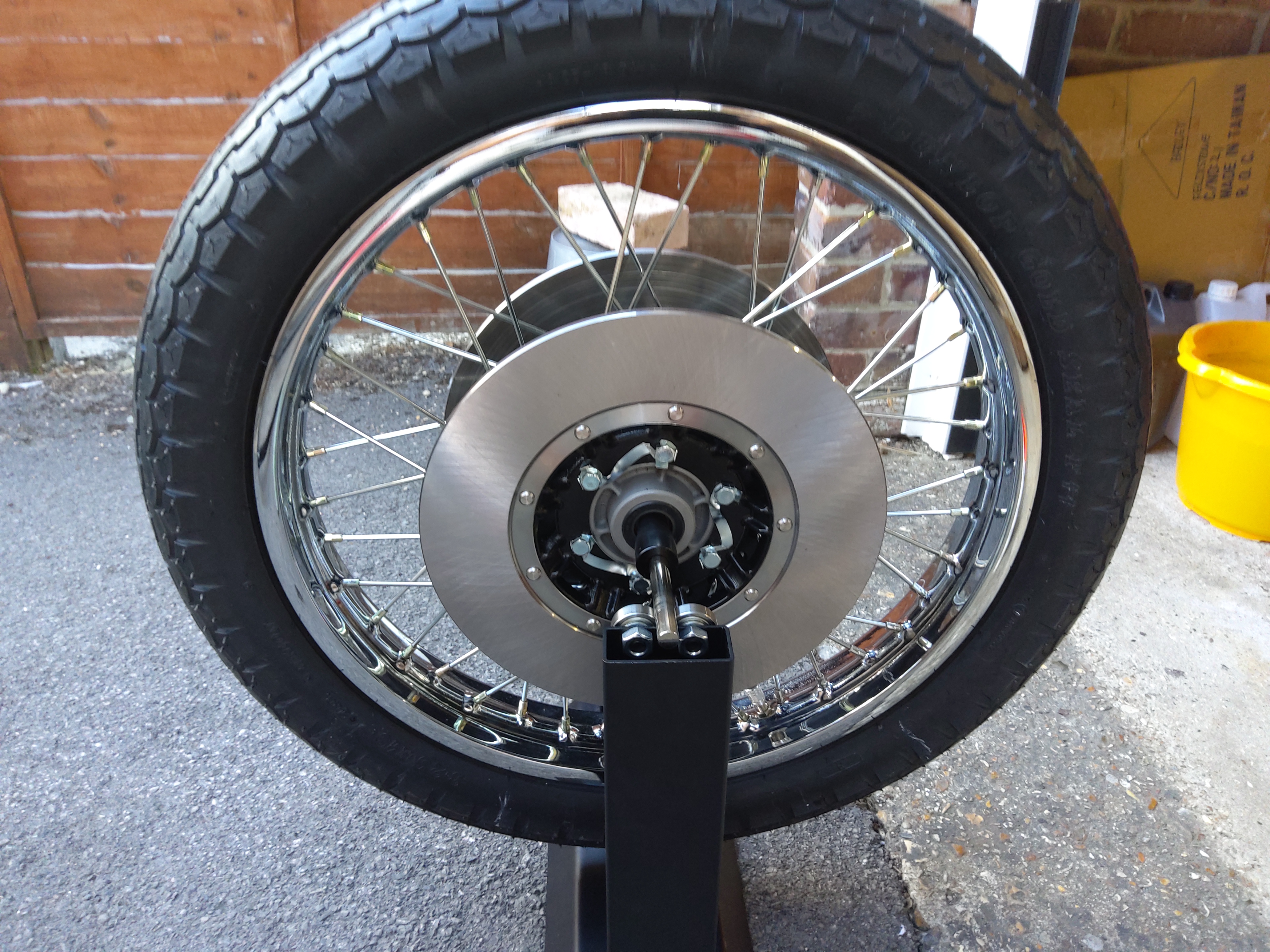 Doh! The penny drops (or does it? see further on). Central Wheels stated they were happy to tension, true, and fit tubes and tyres and the rear wheel grippers but would not balance "wheels fitted with rim locks". I've been trying to balance a wheel NOT fitted with rim locks (the front) which I'm now assuming they were happy to balance from the start. The only problem with this is there are no visible wheel weights! All that I've done since picking the wheels up from them is add the disc rotors to the front (LH disc is my original with 22,000 odd miles on it, RH disc is new pattern as I've gone for Z-Power's twin disc conversion). I've now tried the wheel-balance stand with the rear and it has stopped in EXACTLY the same place on three runs. I've now successfully balanced the rear so the stand was a useful investment for the future. So, back to the front. Unless they've balanced it with invisible weights or fitted them inside the rim, the only conclusion is that by pure chance the wheel has achieved near perfect balance by the grace of god and good old British blitz spirit. Unless any of you can explain this I'll put it down to Z-Pixies.