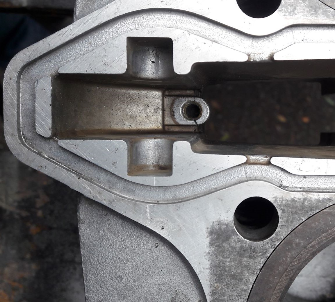 The block is a spare I've had for some years and was getting prepared for a re-bore etc. The front cam guide needed to be removed, the screw was tight so had to use an ezee out, when the screw came out it was covered with old sealant/glue, a close inspection of the boss in the cylinder block showed that it was badly cracked. Any advice on the best way to get a repair done?