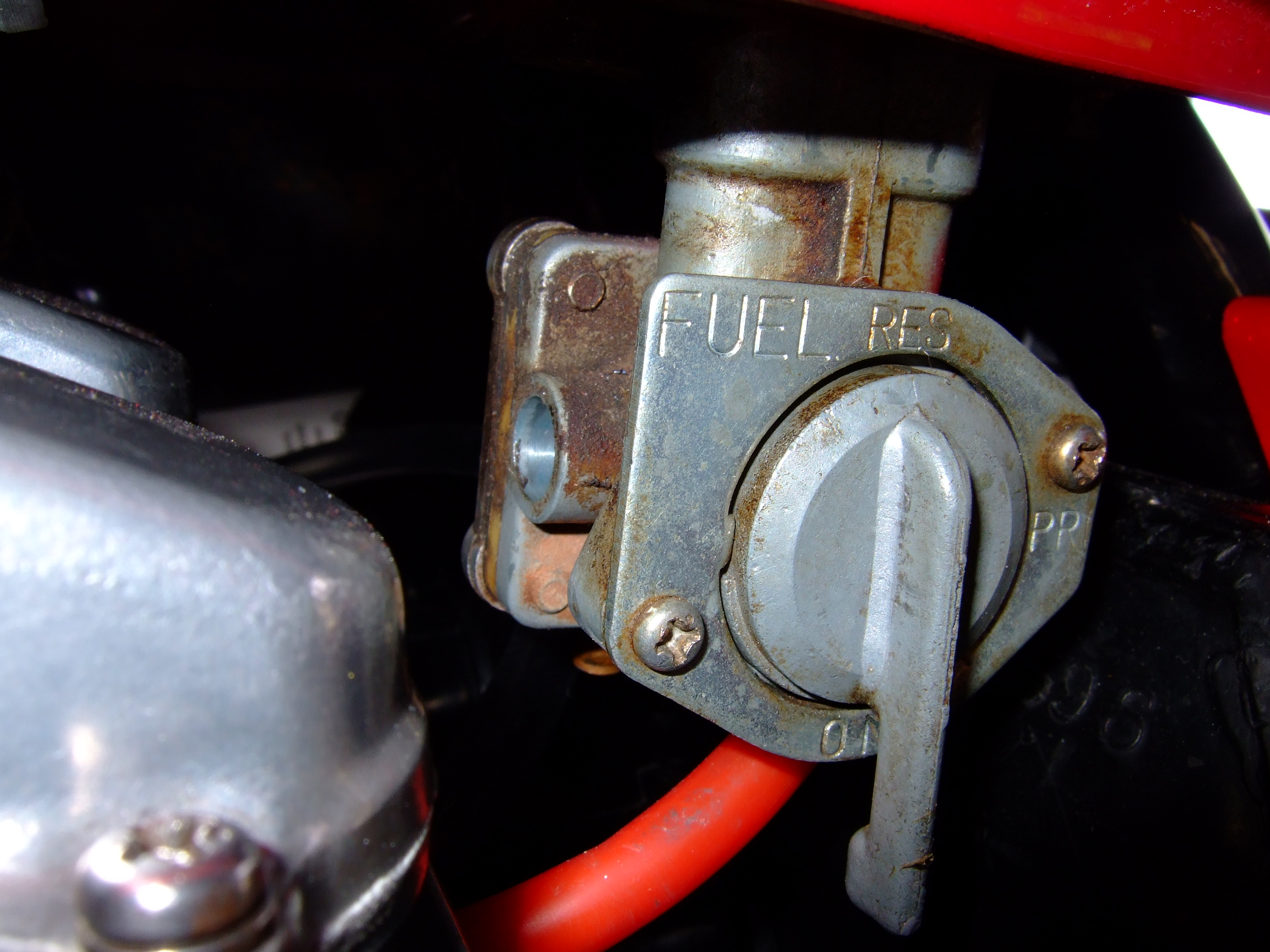 Agreed. I am not a fan either. it seems to work though...for now. I too turn the tap off when finished, but clearly not possible here. I don't like the fact the diaphragm could fail if tap is ON or at RES and allow fuel through when the bike is not running. Yes I have PTFE tape, but the local - and very useful garage shop - should have a suitable o-ring. Yes it's rusty, and yes I will clean it up. Cannot have it spoiling things!