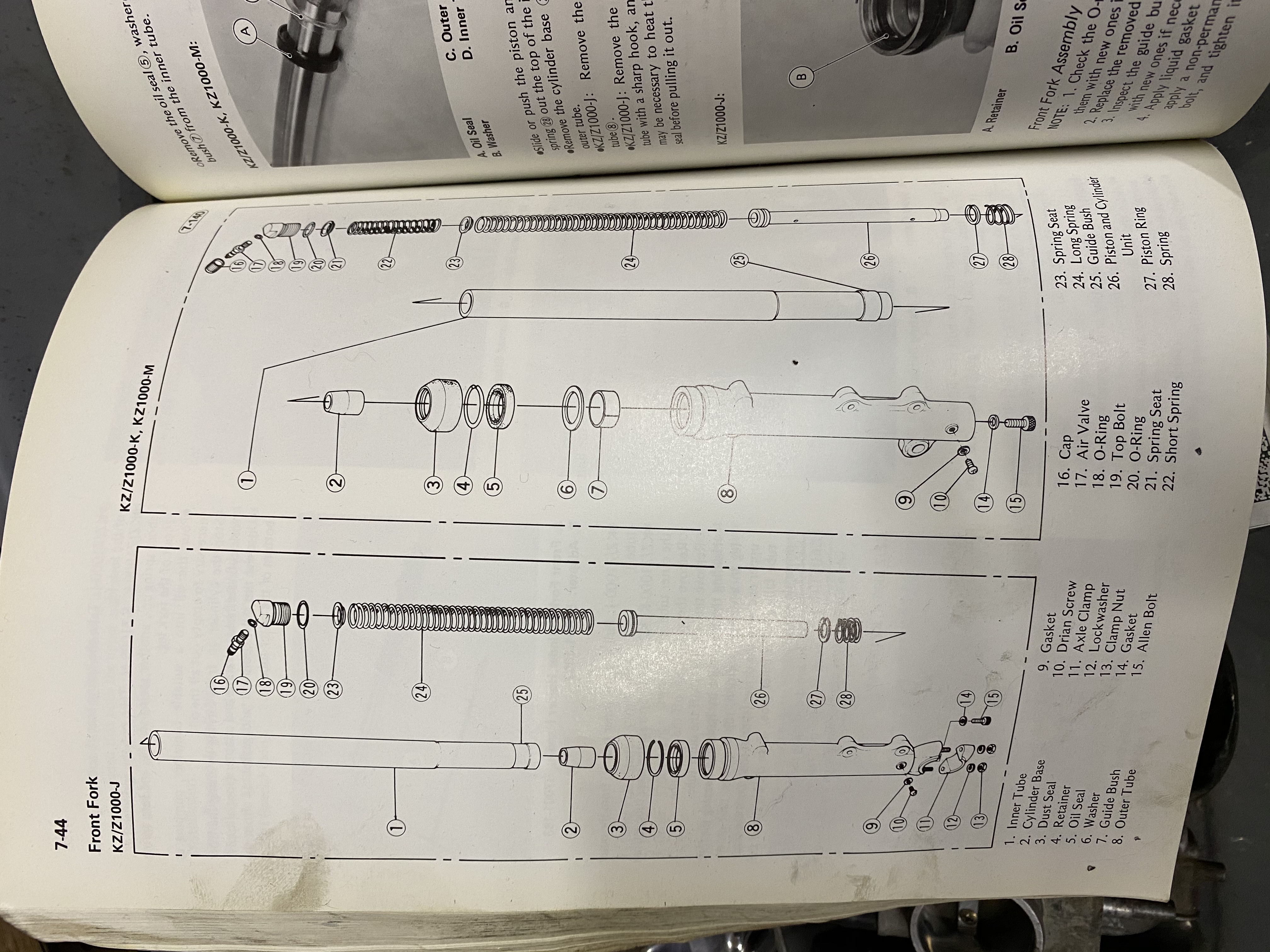 There are pictures below including the manual I have. In the manual it says the KZ1100B should have the forks to match the diagram for KZ/Z1000-K, KZ1000-M