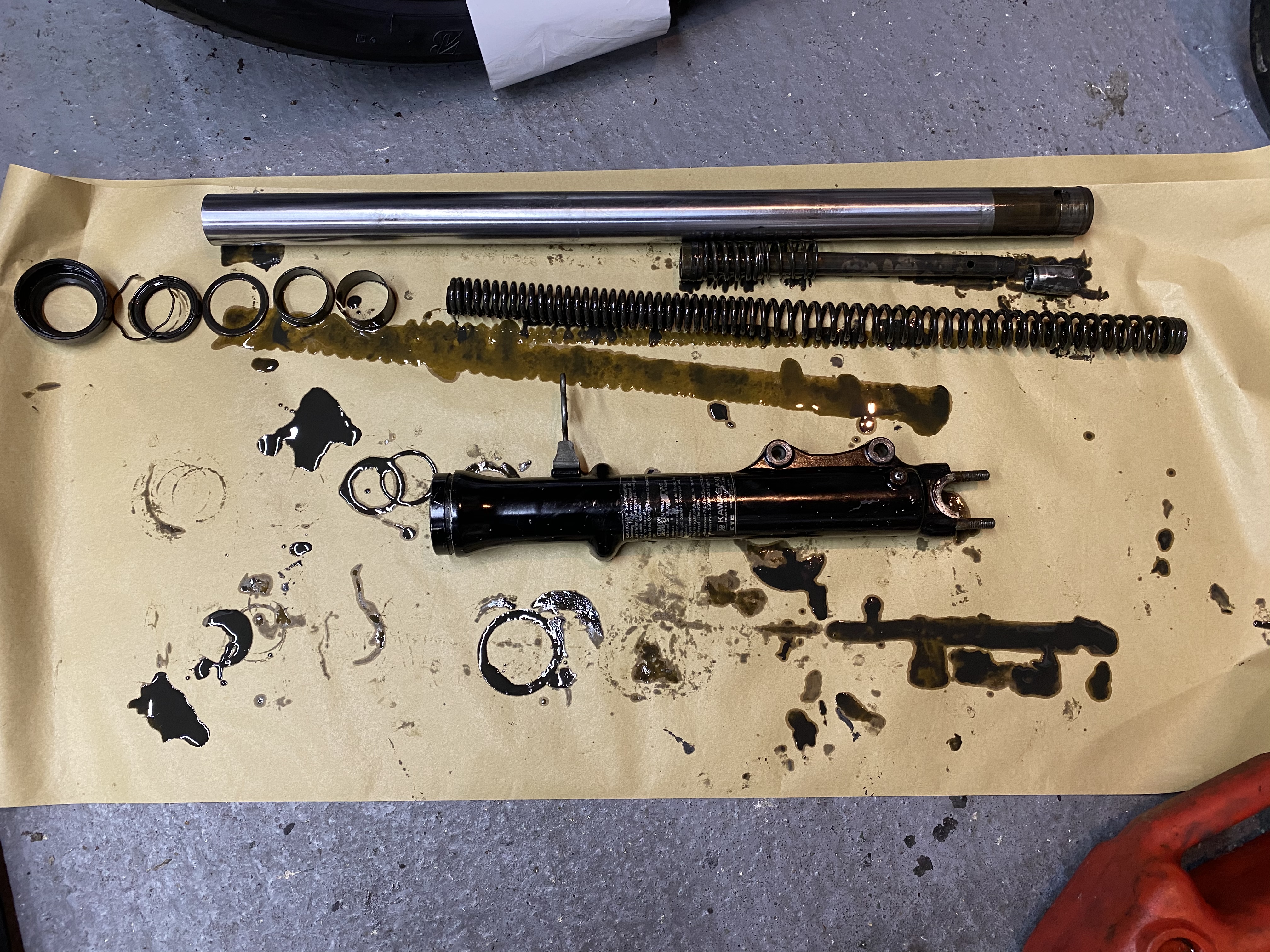 The first thing is my springs are progressive which is not mentioned in the manual. They were different ways up in each fork leg !