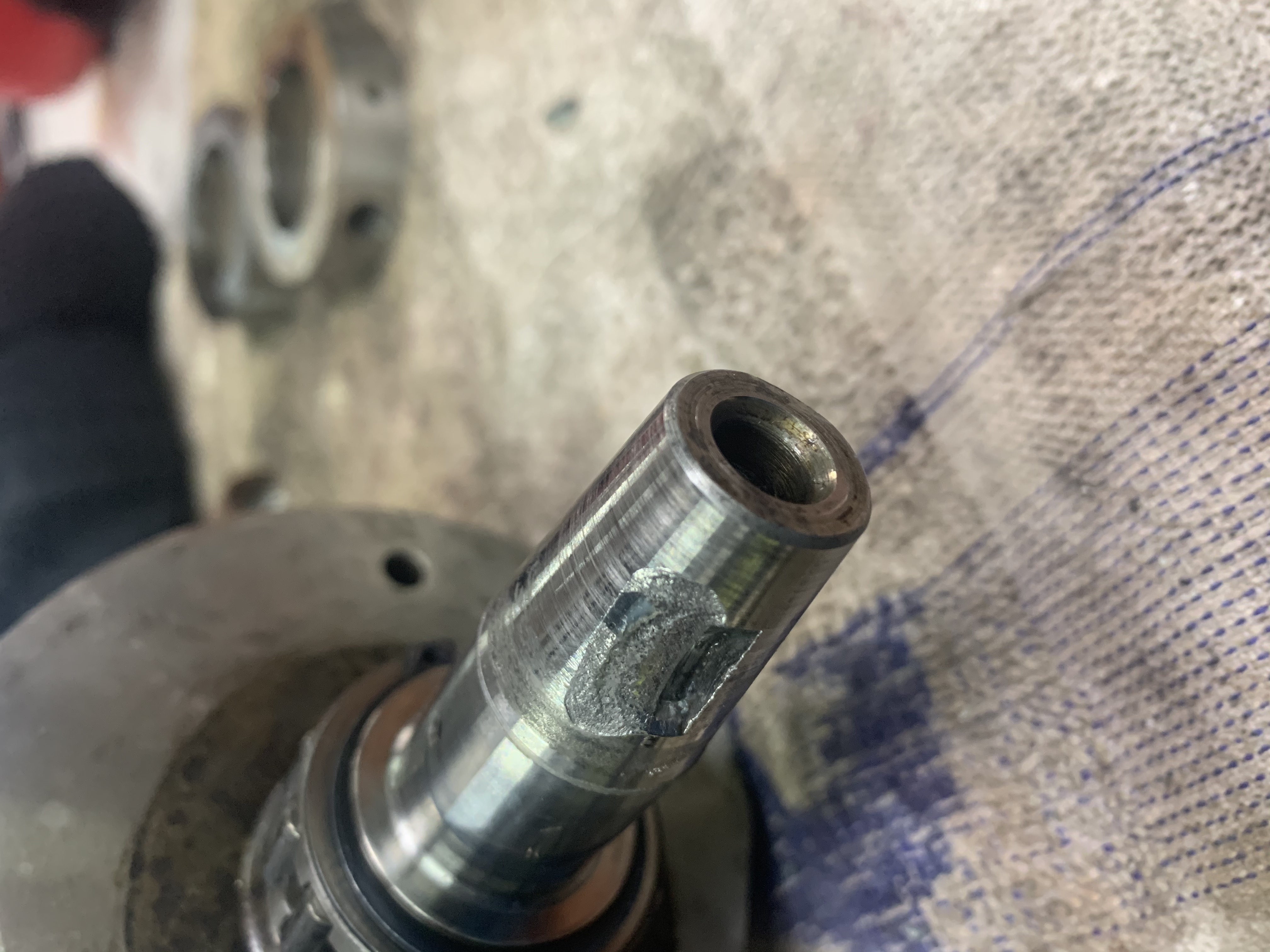 The images below are from the end of my ’75 Z1B crankshaft which I am in the process of restoring. This is the rotor end and as you can see there’s been some damage to the slot for the woodruff key. I pulled out what looked like some small pieces of epoxy so I am guessing the last guy tried to fix it that way!