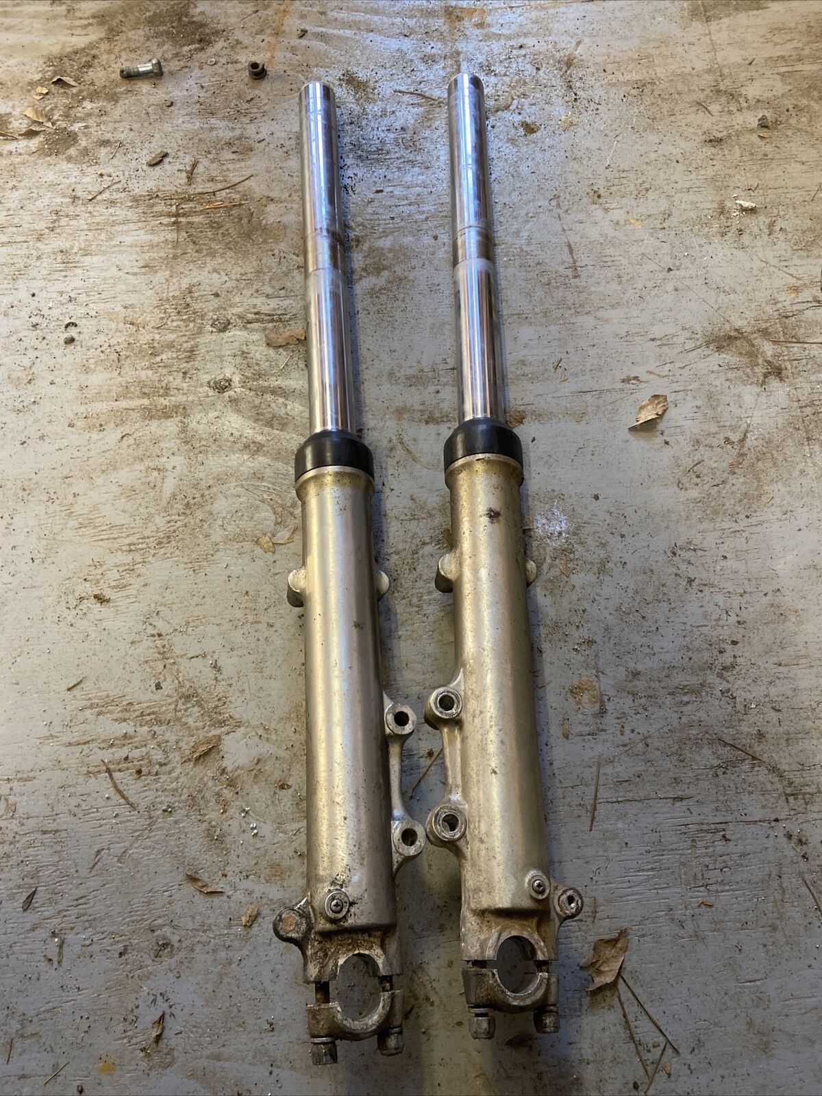 These forks were on a Z1R project bike I picked up. Don't think they are Z1R, can anyone identify them please as i need to sell them. The chrome is good, no pitting, but they need new seals and a brush up!...
