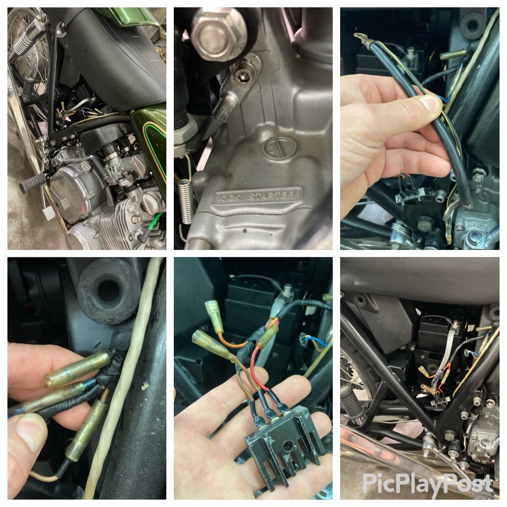 All, (I hope I am in the correct area), I my attempt to get the bike ready to ship back to UK, I replaced the battery which was taller than the original. I had to extend the battery negative, (then I had a brain fart), lost the pic's and I think a piece of the harness and need help. I was hoping a member could send me pic's and or tell me were the wires, bits connect too. The bike will not turn over on the starter button, so I assume when I get this issue resolved, its container time and shipping. And yes I am a dummy please don't judge (to much). thank you. Finally, I have assumed that the rectifier under the battery box (black lead), is ground...