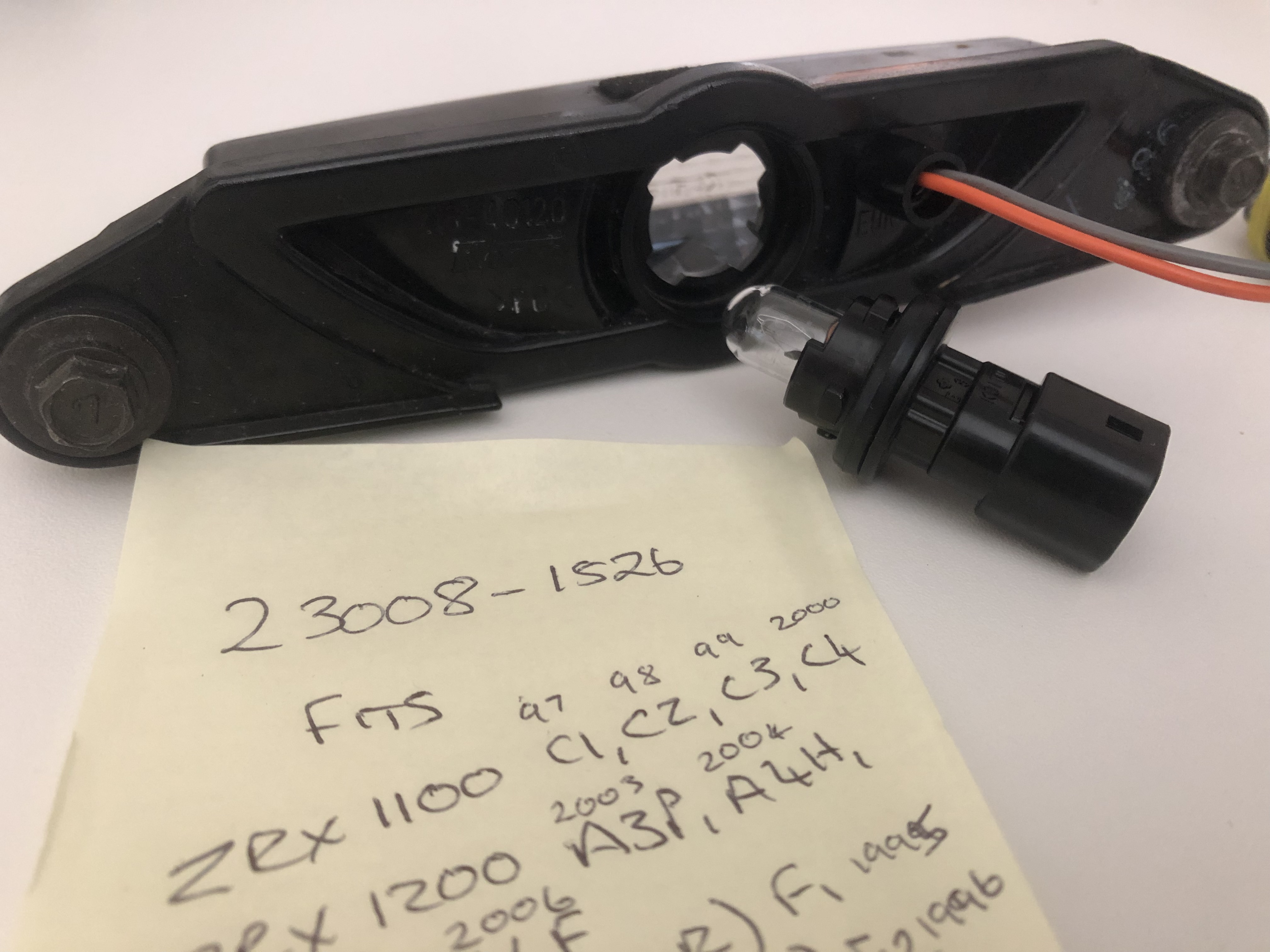 Would anyone happen to have an image of the connector that connects to the ZRX1100/1200 pilot bulb holder. Images below show the pilot light and holder but not the essential electrical connector. I believe the connector i require may be part of the main ZRX wiring harness and not a sub harness. Can anyone confirm this? Would anyone have this electrical connector for sale or the harness for sale?