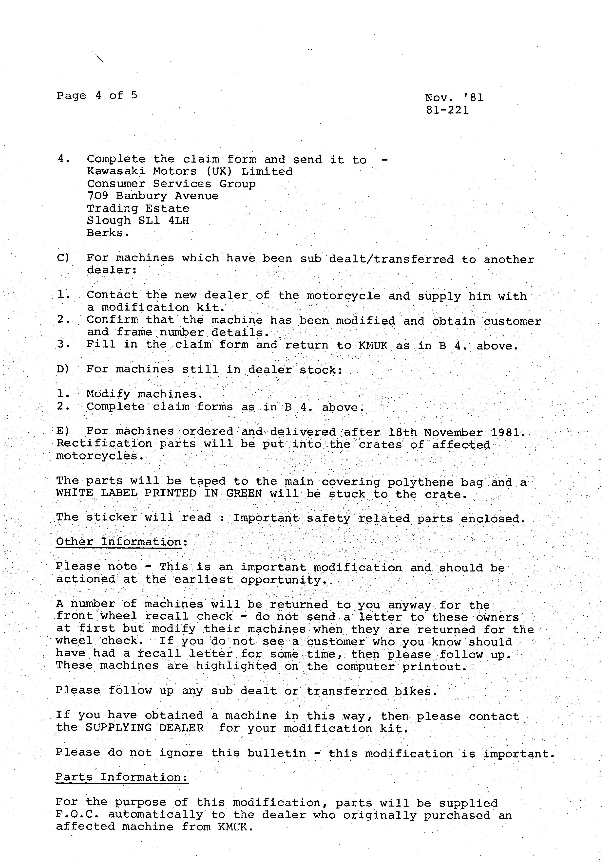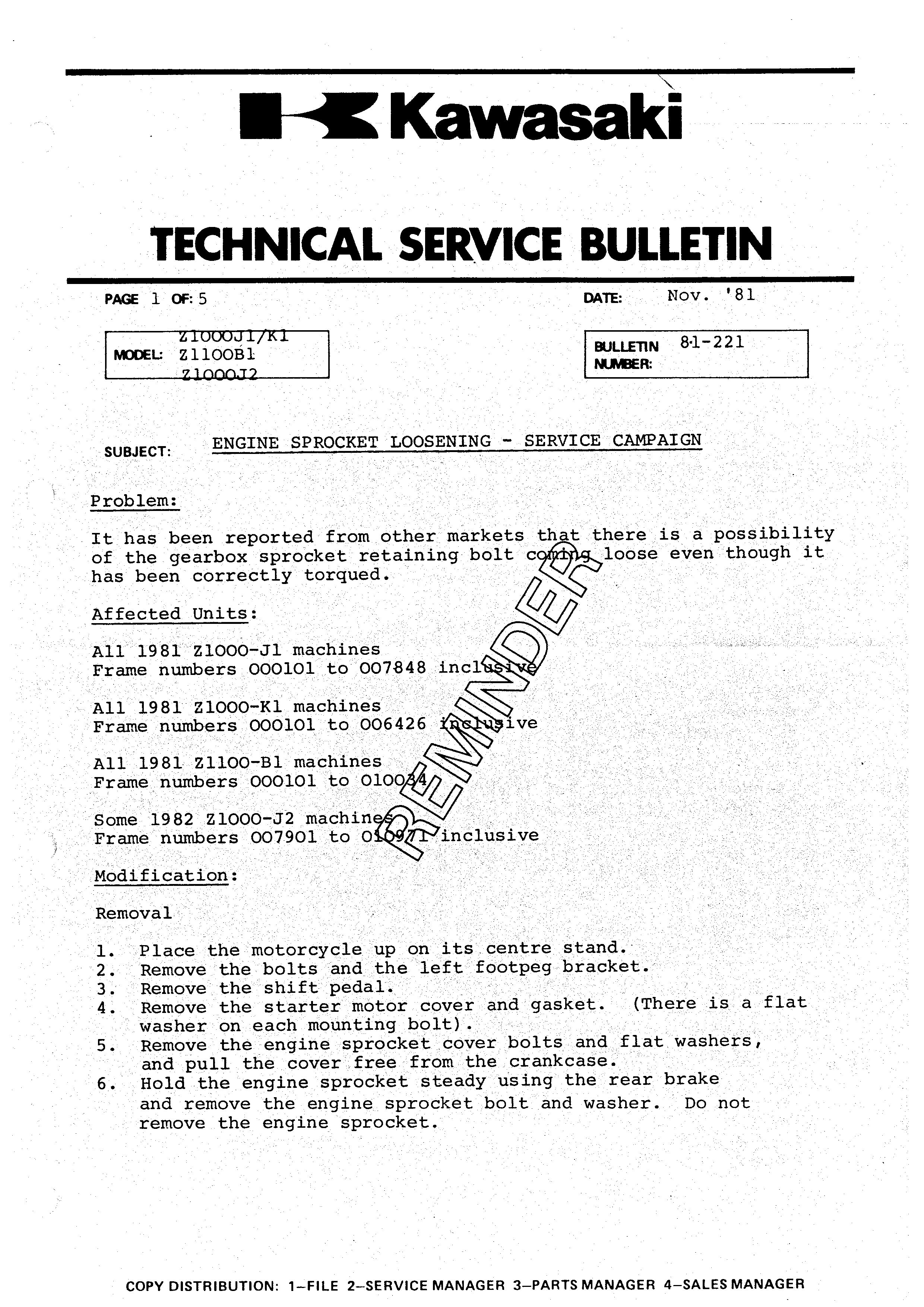 76 Z900A4, 77 Z650B1, 77 KZ650B1, 77 Z1000A1, 82 Z1000J2, ZRX1100R.