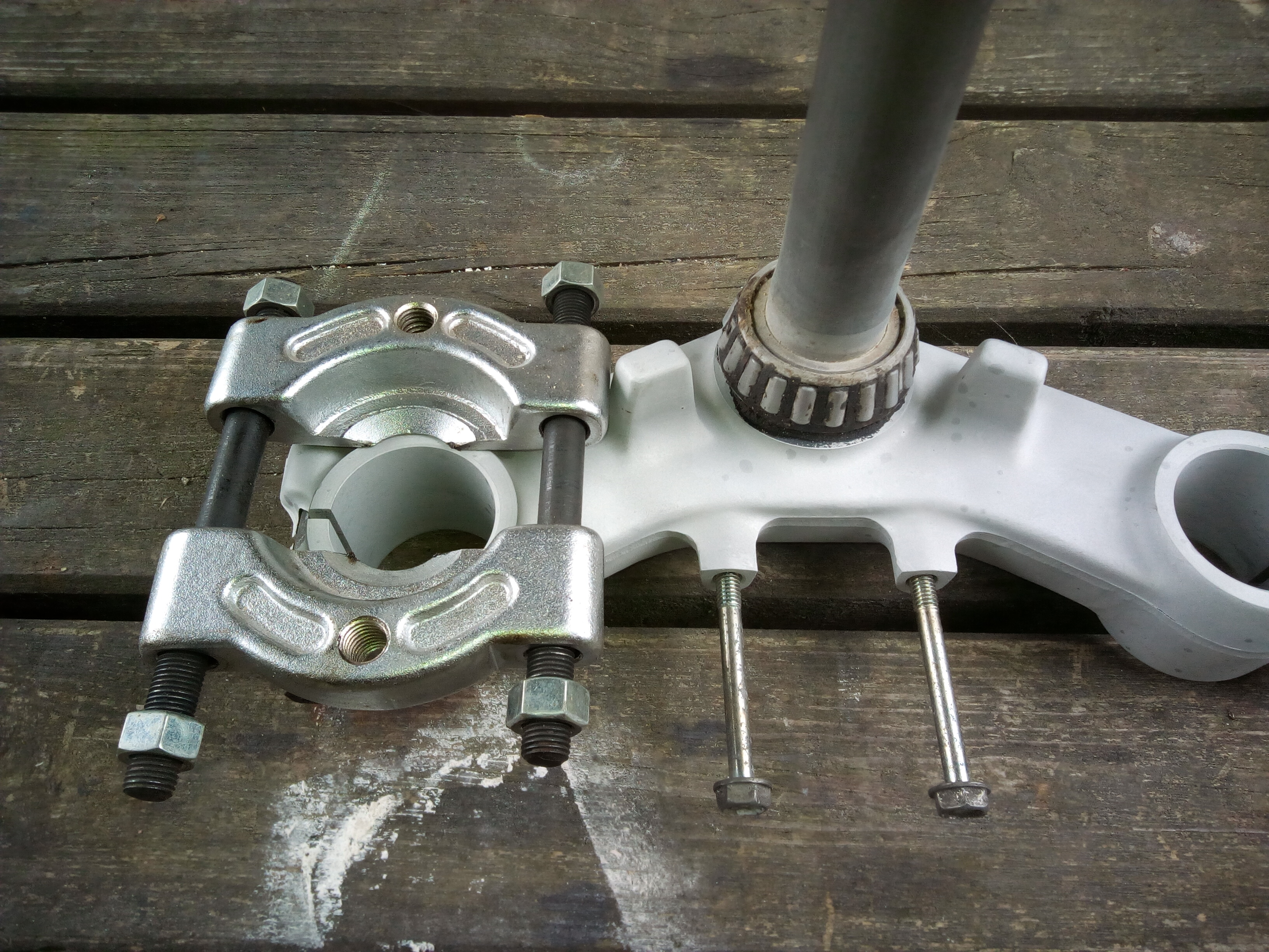 Is there a trick or tool to get this bearing off? My bearing puller won't get in due to the lock stops.