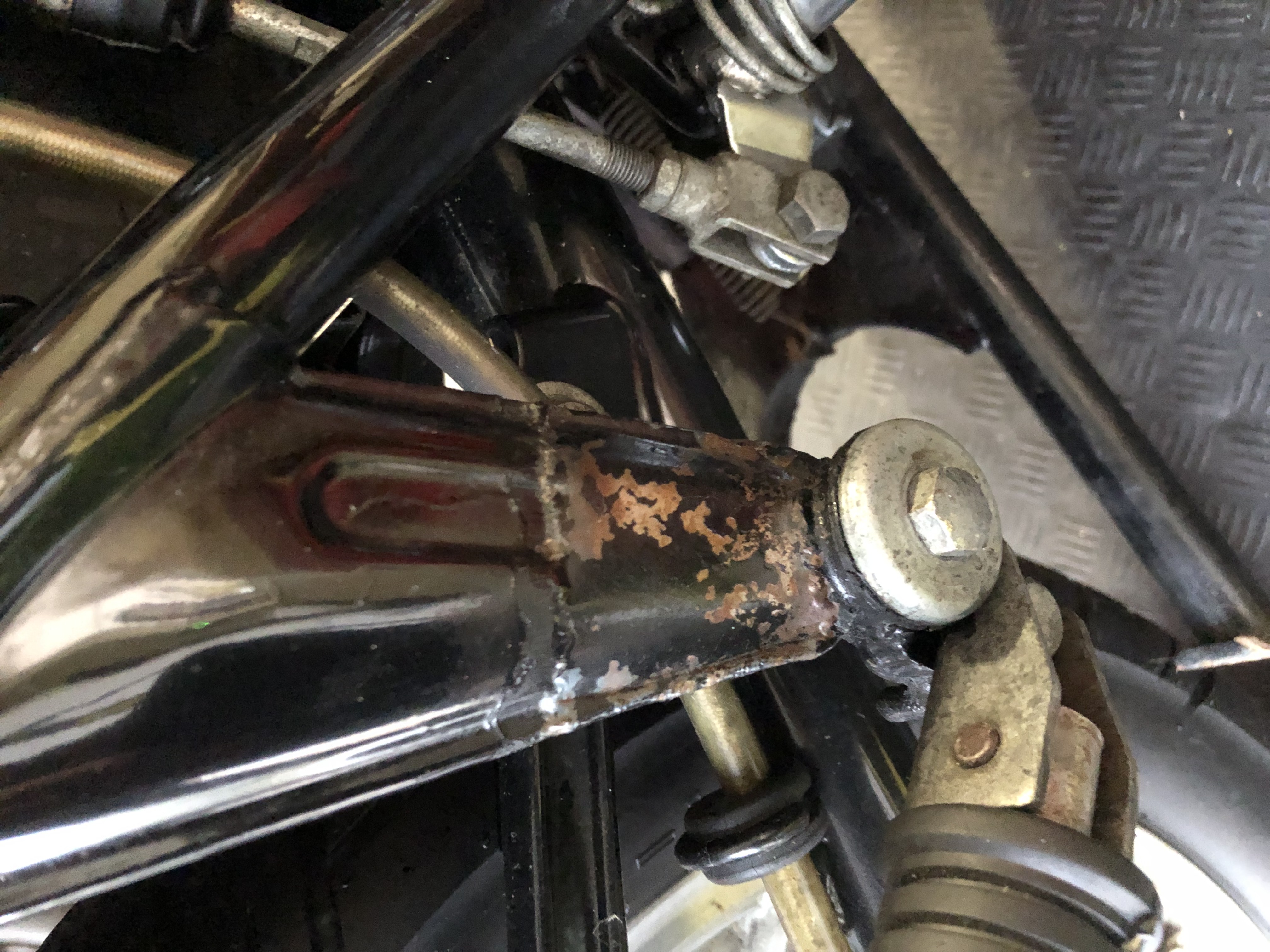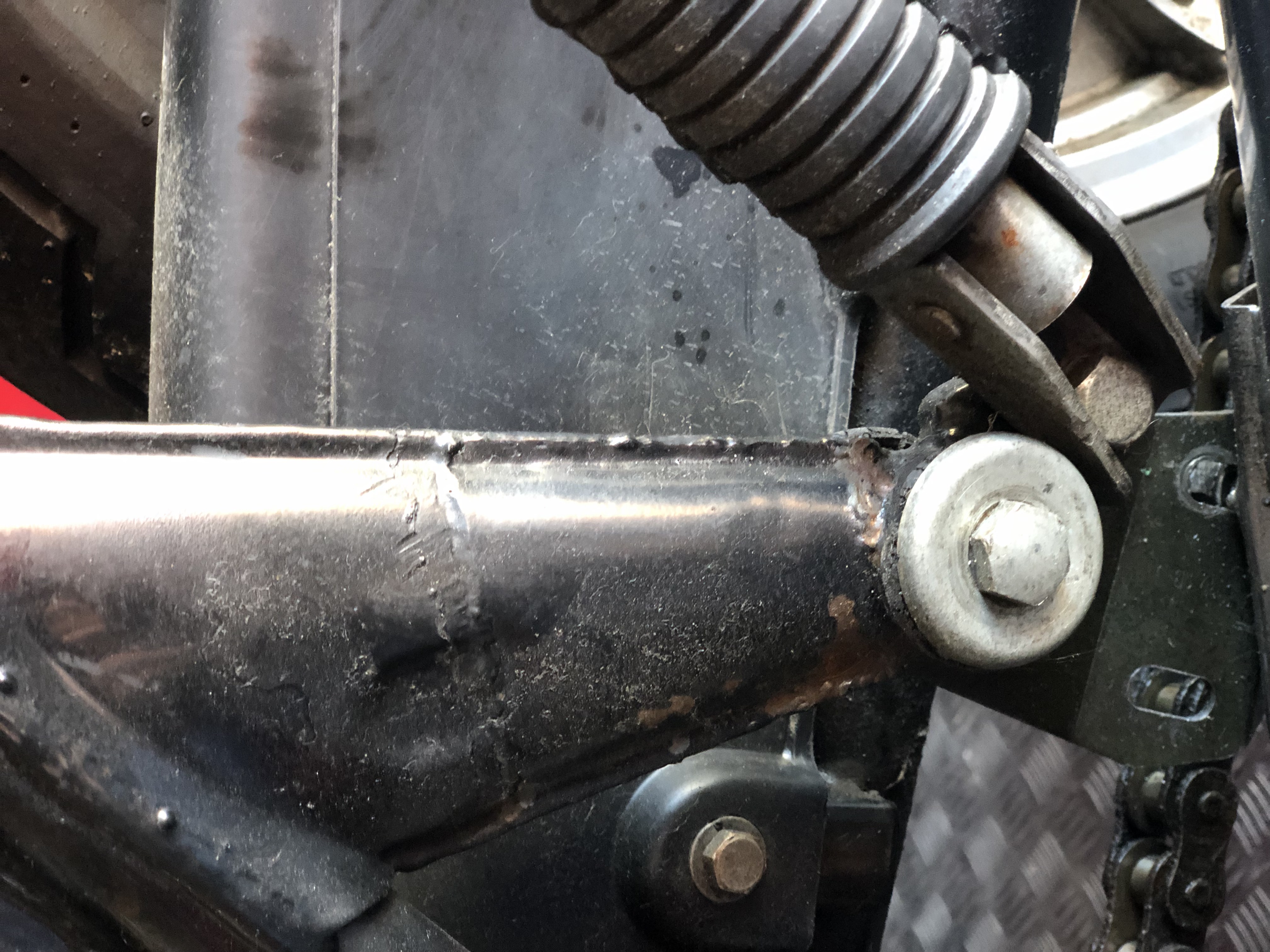 Has anybody ever come across a reason for having the rear footpeg hangers on each side being cut and welded? They are not shortened, and I cannot think why this might have been done. See attached images.