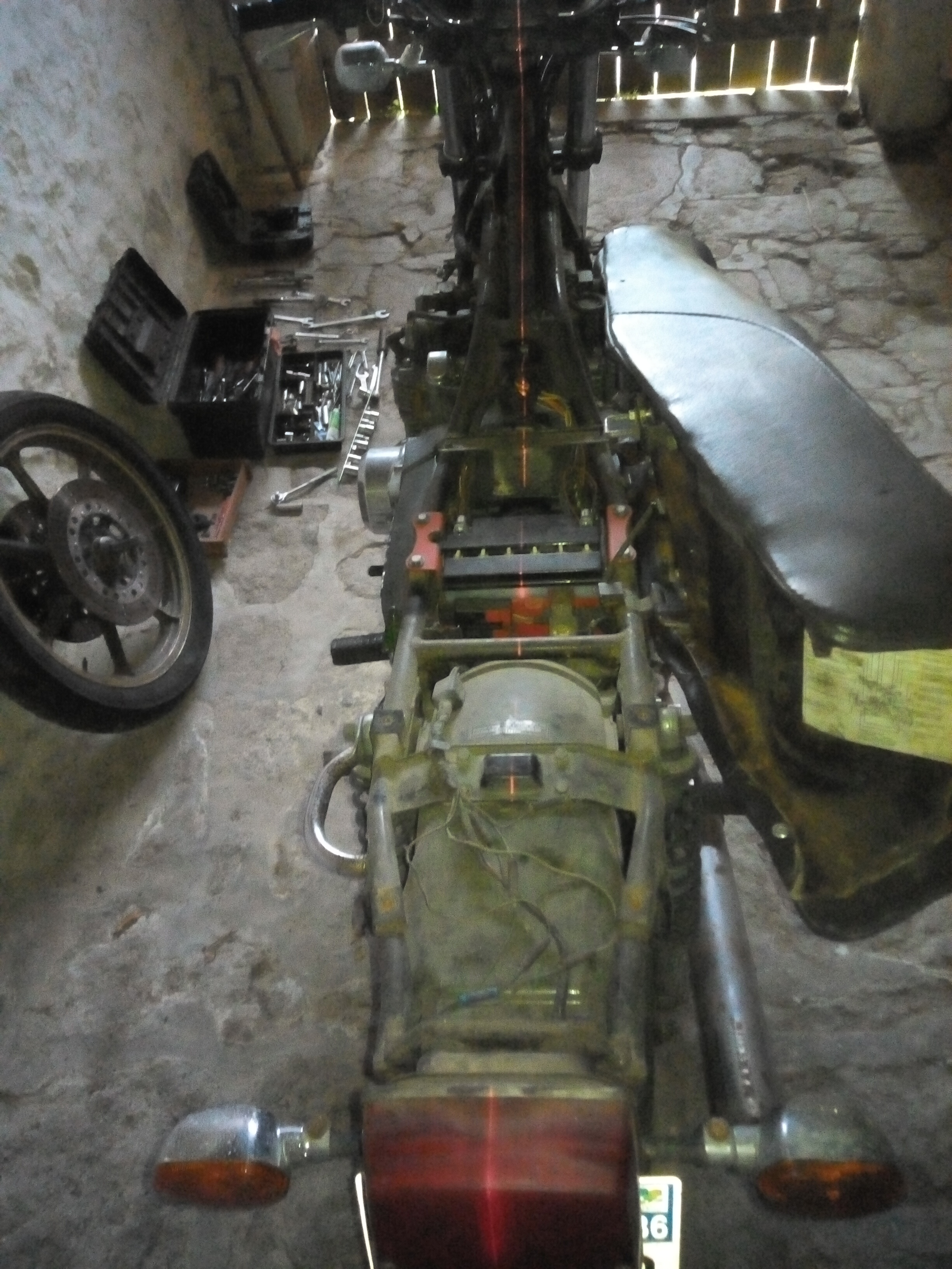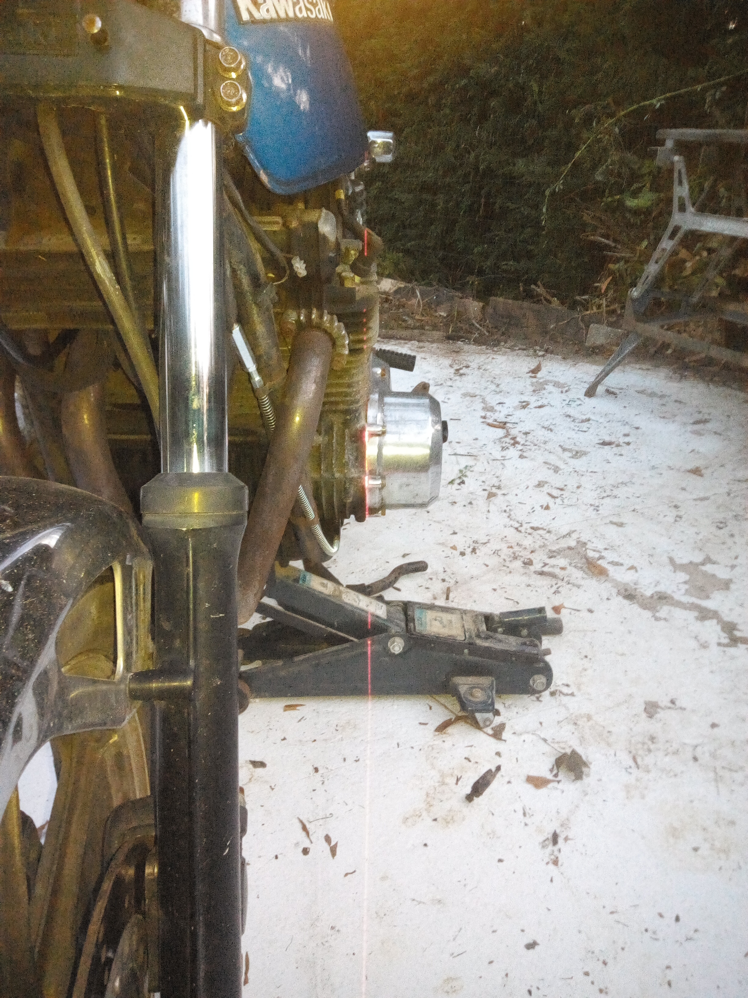 Ever since getting the ST home a few years ago I realised the frame or yokes were twisted. I've lived with it for a couple of years but now it needs new boots I'd like to try to narrow it down.