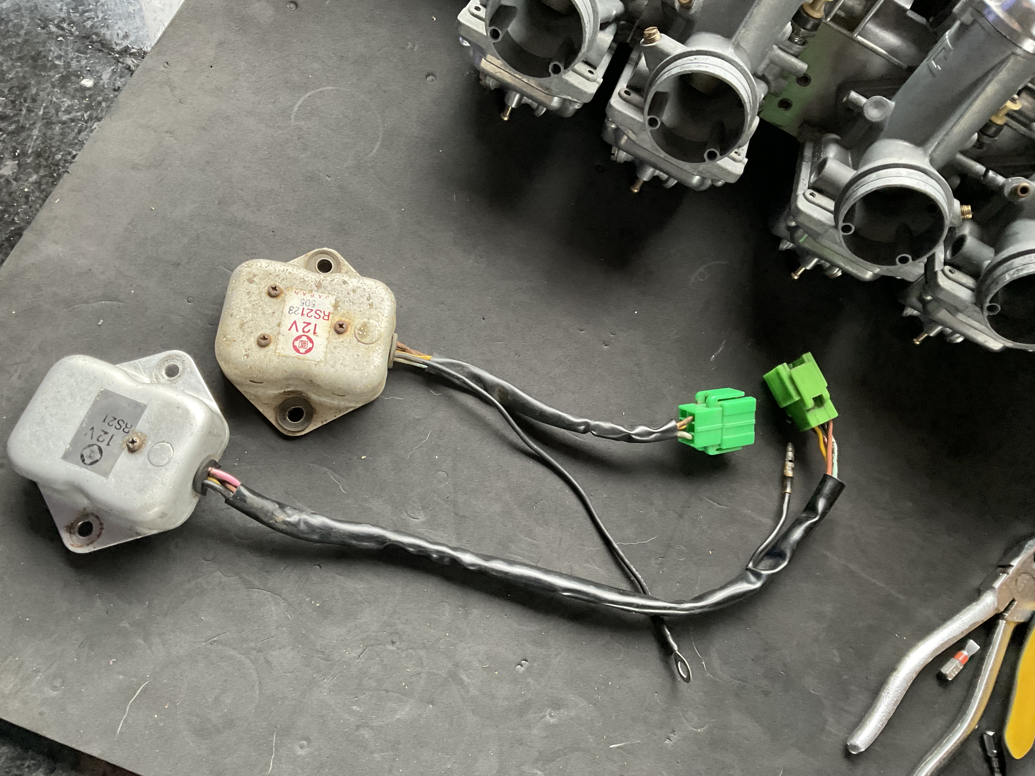 a couple of reg units wiv the wires cut and the old resistor pack, pretty sure the reserve lightintg unit is up there as well, seem to remember it were a right git to wired out and bypass
