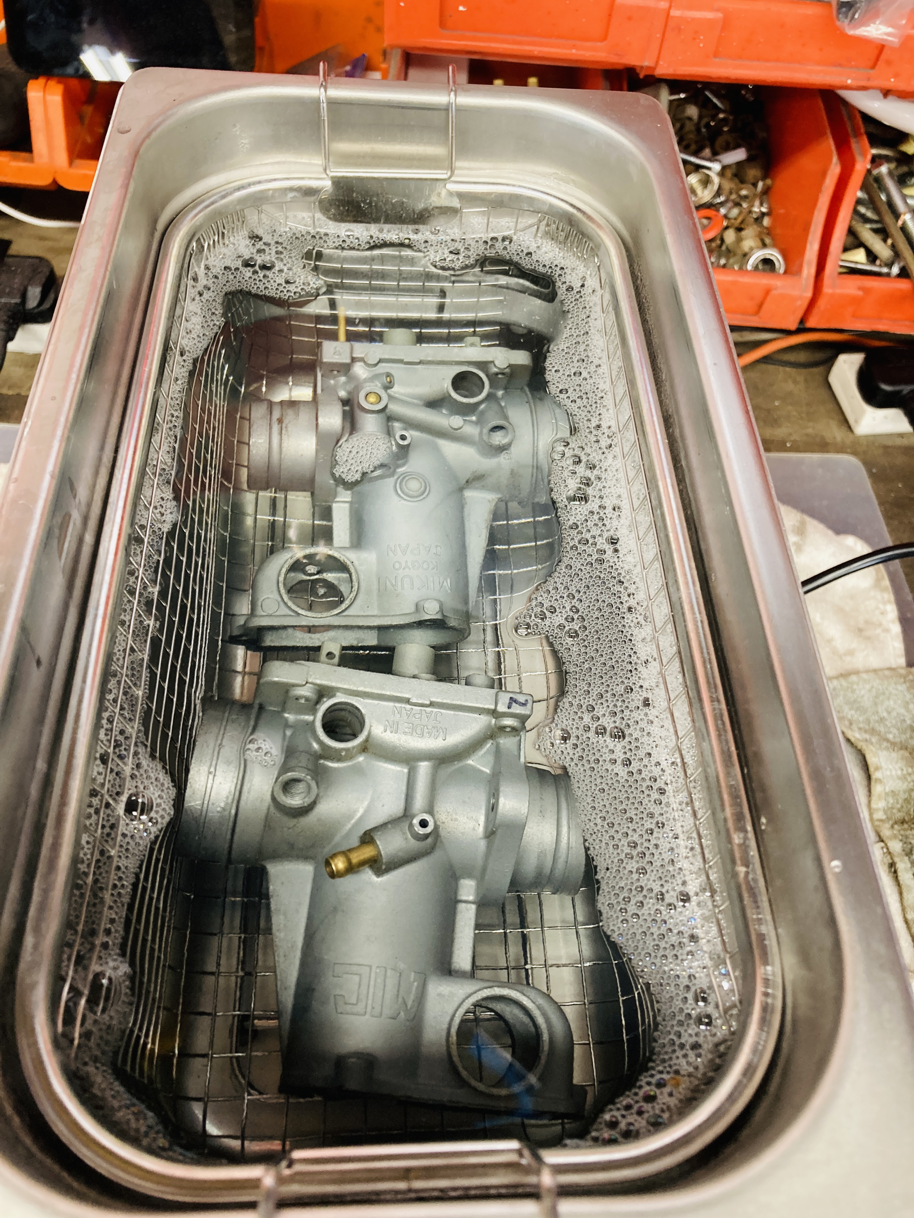 Got my carbs dismantled down to individual bodies and parts to ultrasonic clean and renew parts.