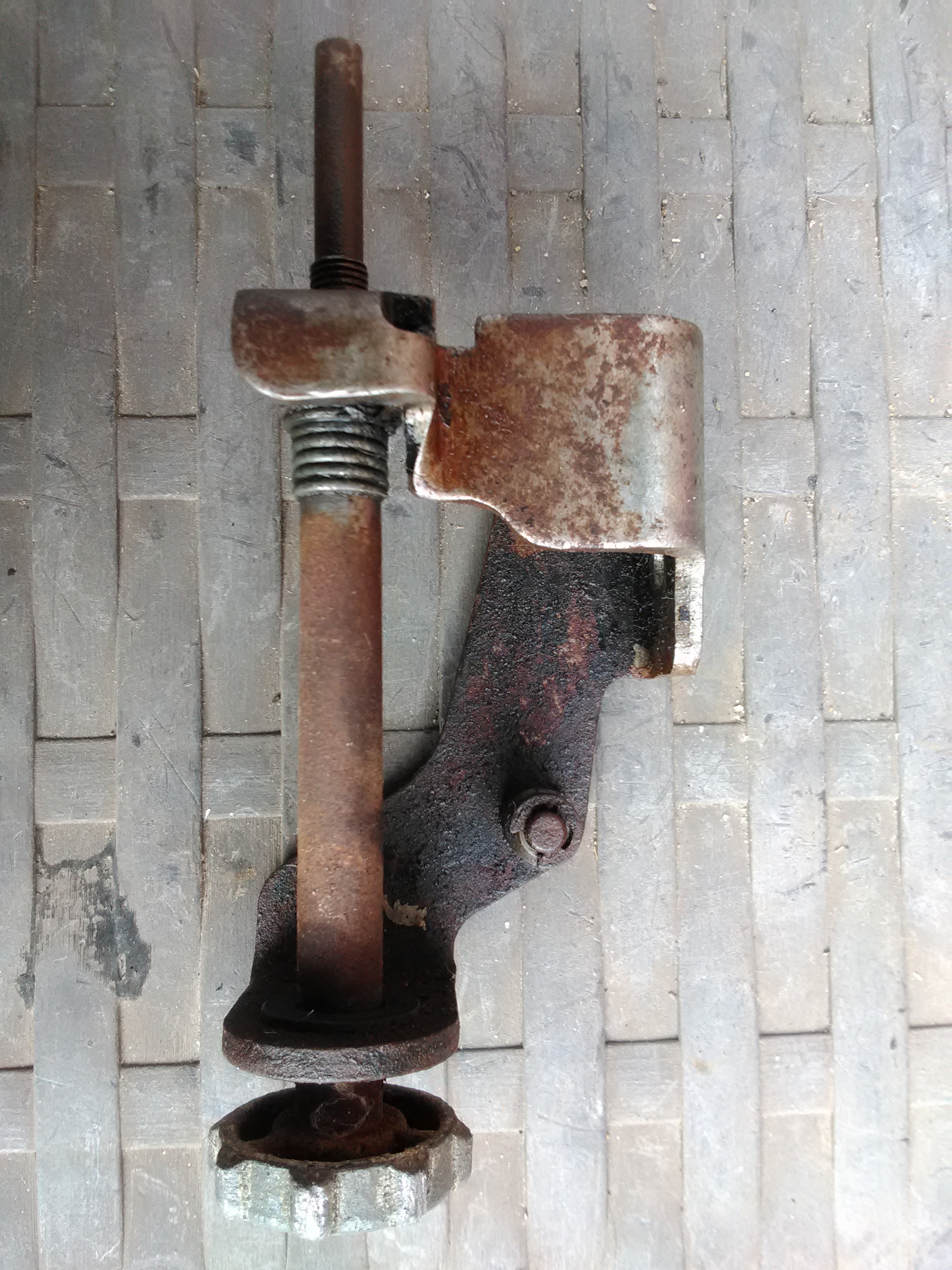 the threaded section at the top has probably been exposed for decades, so the threads have rusted a bit. Screw it clockwise 3 or 4 turns , to bring the rusty area up then wire brush the upper threads , then screw it out anticlockwise a bit at a time with WD40