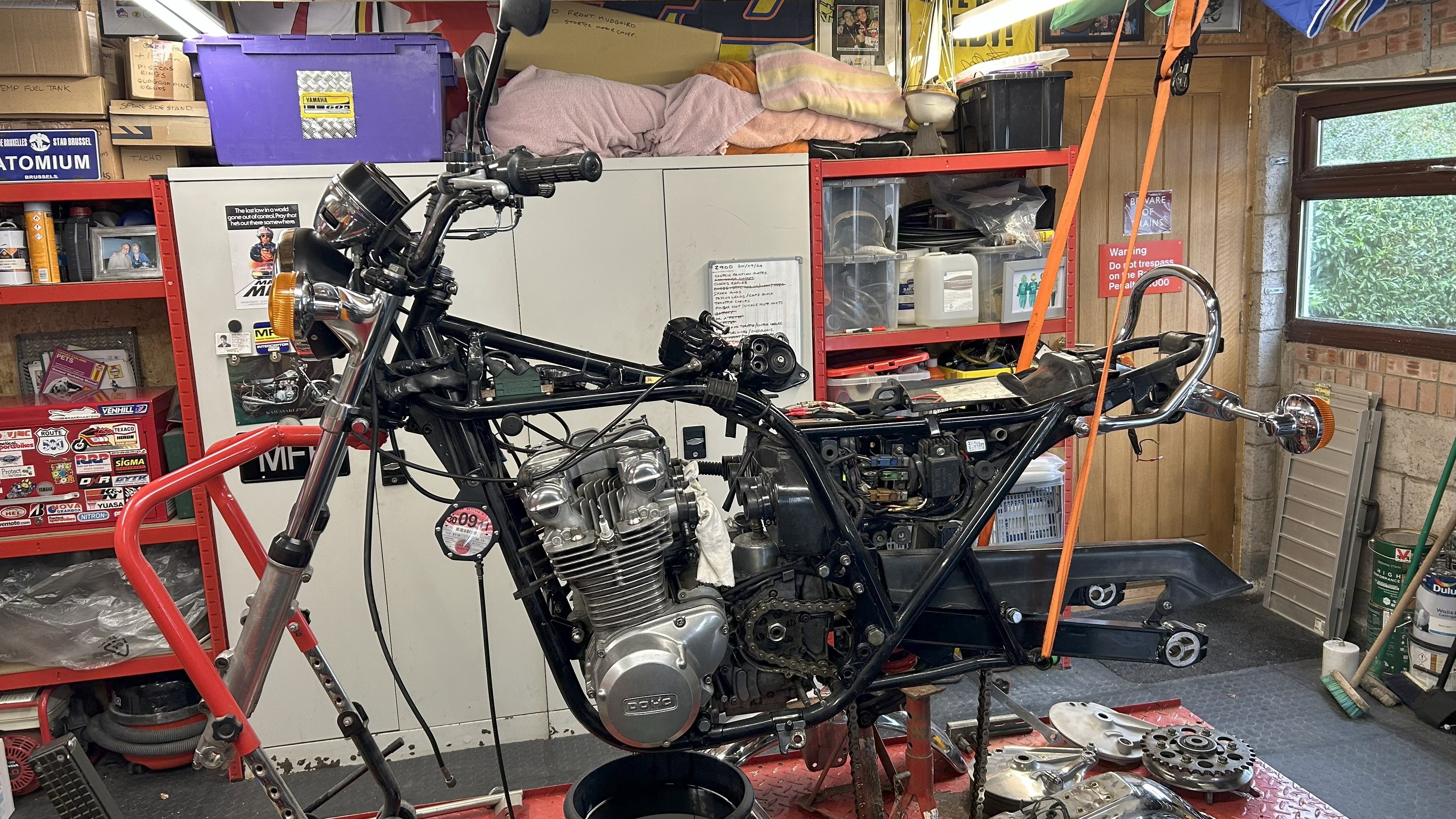 No, carbs/exhaust's were on when its been stored, oil down the bores and turned over a few cycles , plugs back in . Carbs drained and tank drained down ....but tank liner fell apart but I have re done that now.