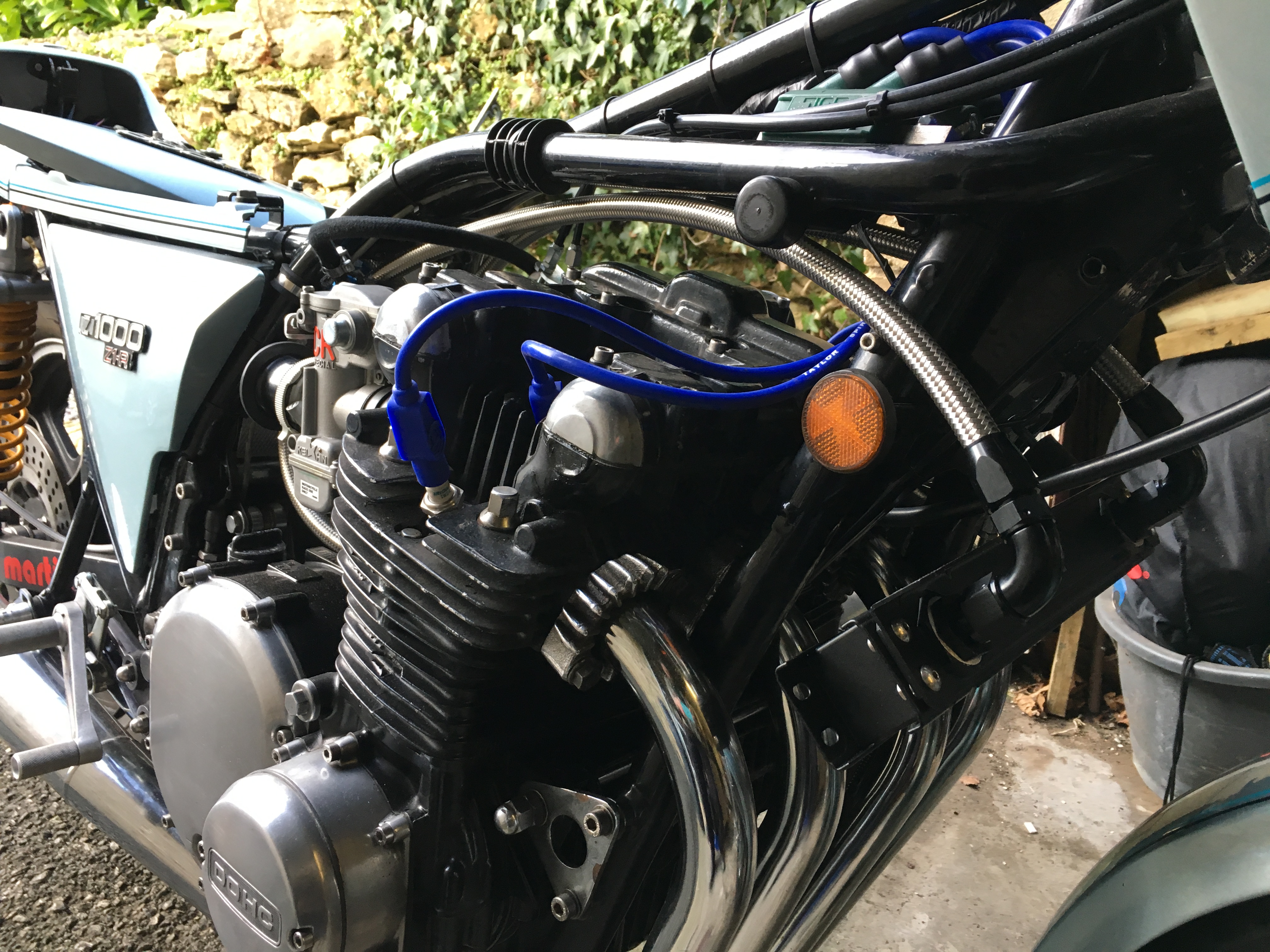I wasn't a great fan of the blue fuel hose either! I quite liked the blue Taylor leads though, I think they bring out the blue of the paintwork. Grey leads might have the opposite effect?