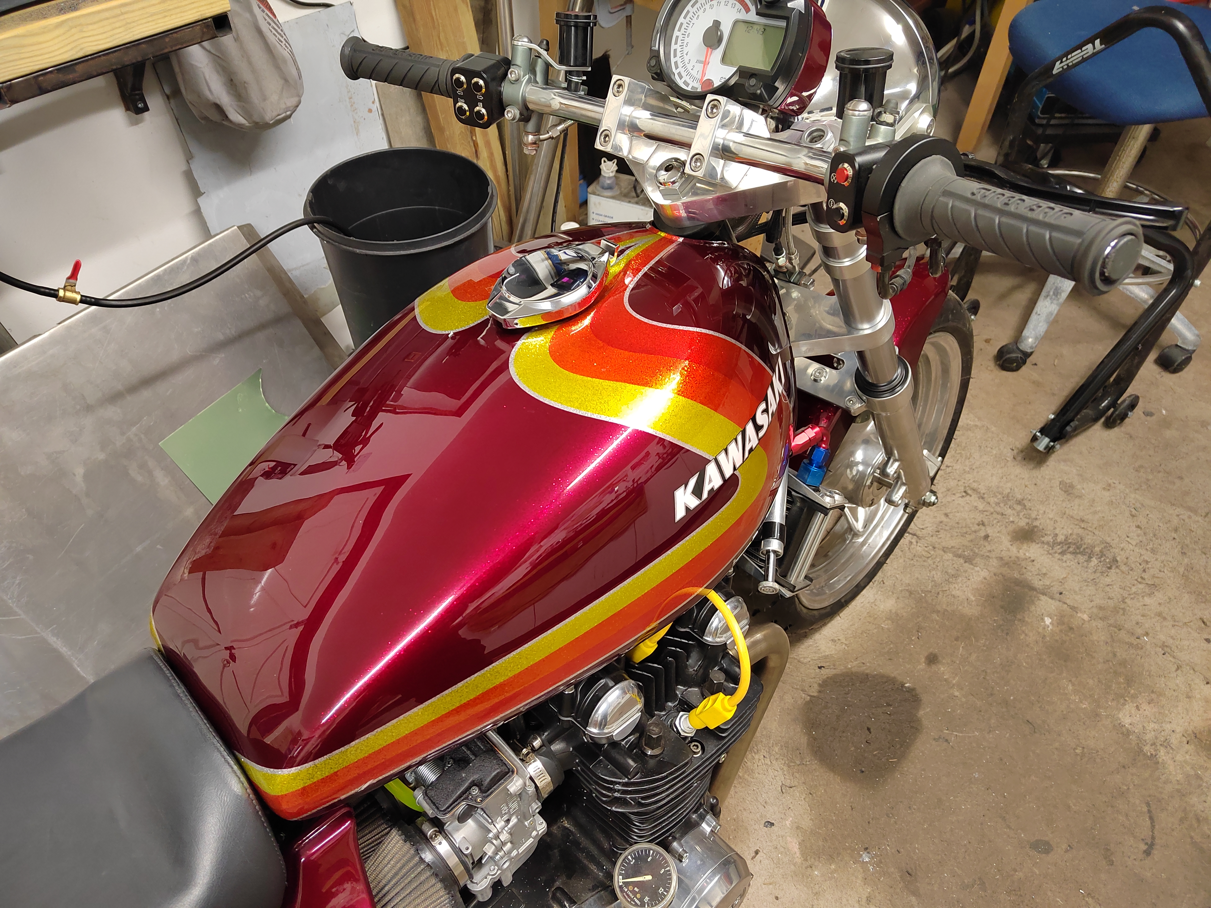 I am not one for the stretched look, but I like every thing else about this bike, that's a cracking paint job and great work, hats off Ian.