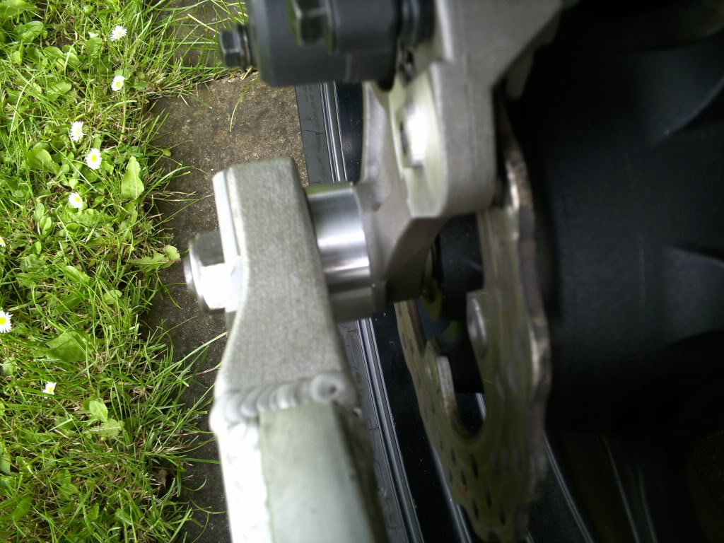 And finally got the rear wheel aligned and fitted a permanent spacer/sleeve in to the rear caliper hanger.