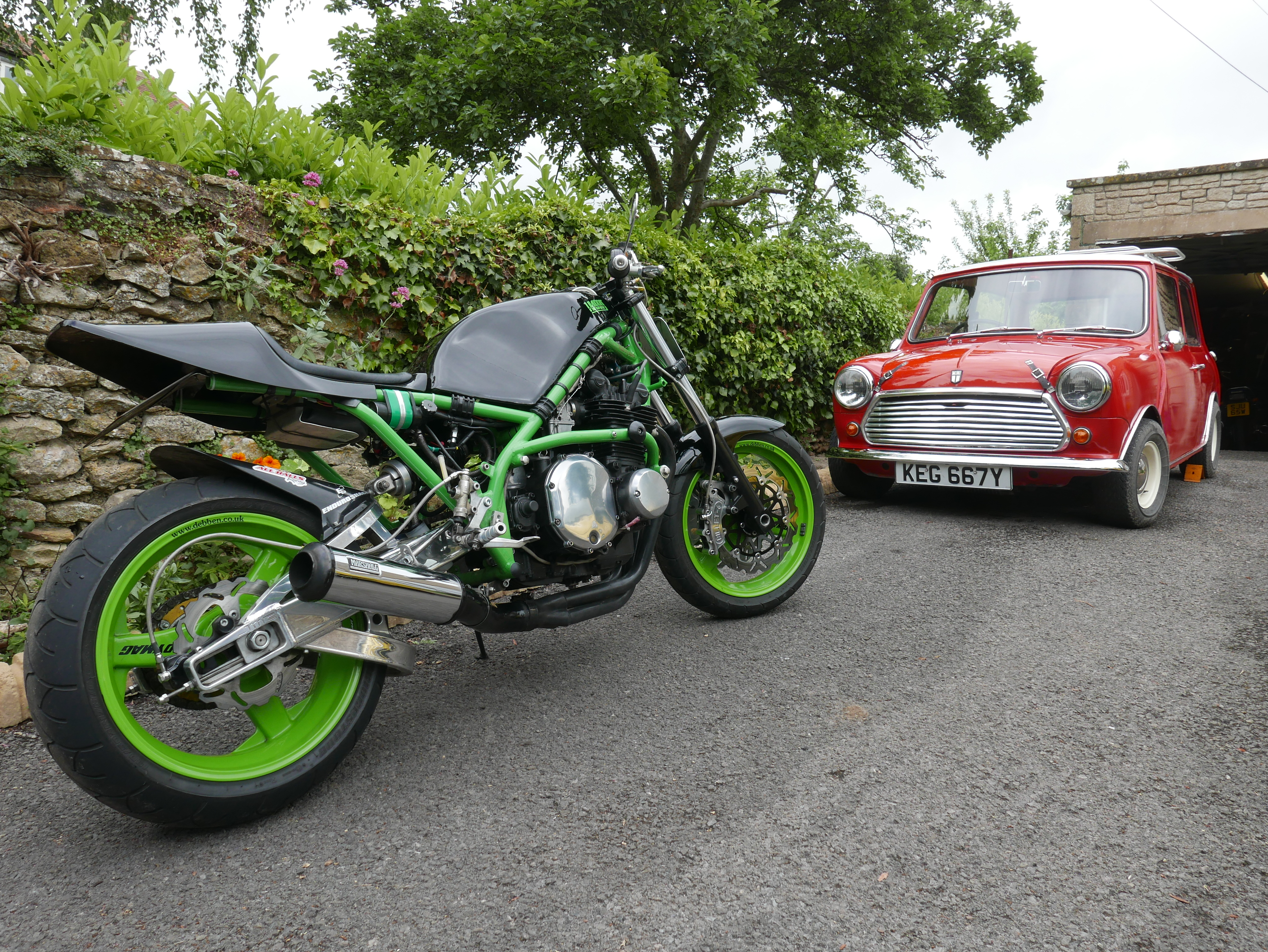 Engine on the right is my Harris lump, Z9, 1045cc High Compression forged pistons, welded and indexed crank, polished and ported head to rubbers with 33mm flatslides, I've also got a full titanium akrapovic system for it dyna s ignition dyna coils and taylor leads, need source some cams when funds allow, which is what the engine on the left is for, Z9 again had a gearbox issue so ripped it down putting it back to 903cc block and clean it up to go back in the 76 a4 chop thing to sell it to fund the rest of the Harris