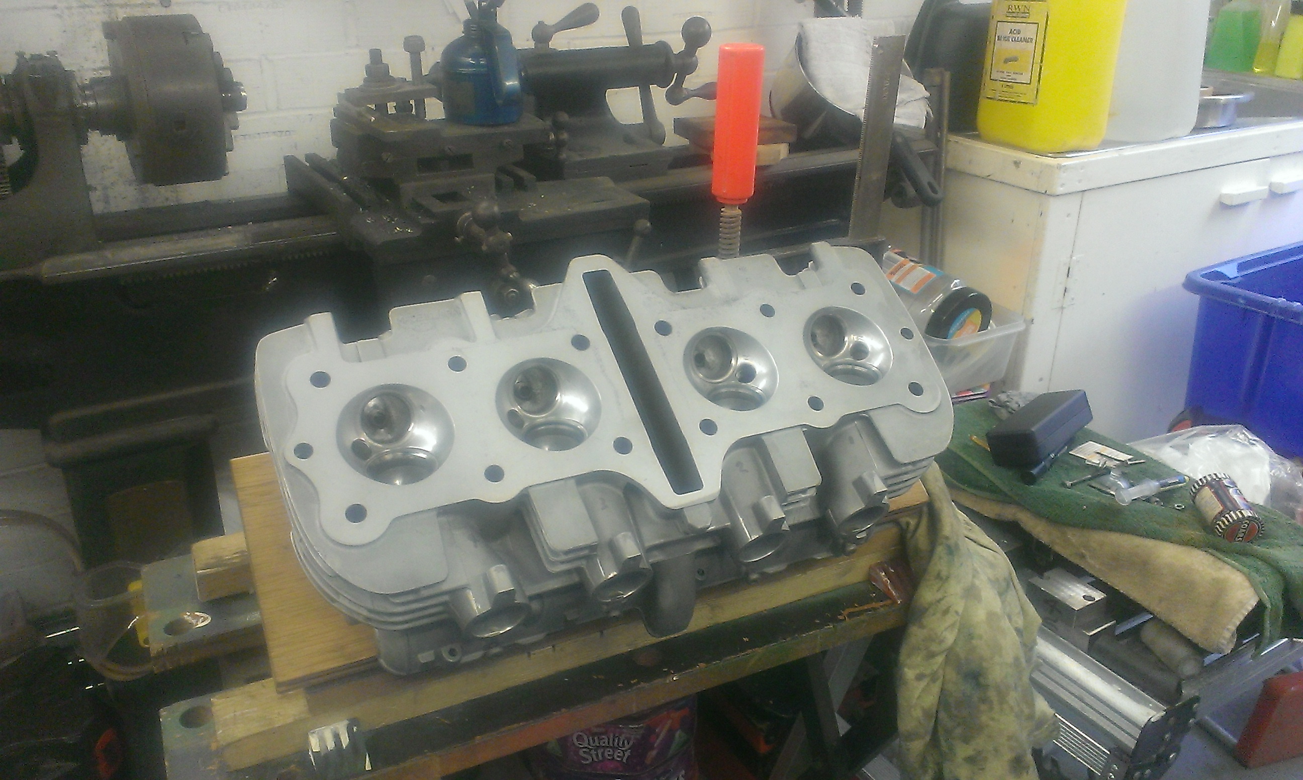 I was playing in a band which took a lot of my spare time and was one of the reasons it took me so long to get round to the project. The first thing I decided to work on was the carb’s. Back in 97 I’d stripped ‘em down cus the Zed had stood with fuel left in it for a while before I dismantled the bike. The petrol had evaporated and left a kind of lacquer residue behind, so I’d started cleaning them up but that’s as far as I’d got. Fast forward to 2016. I like carburettors. They’re nice to mess with. I managed to clean all the nasty off and got em back together and they look great. I just hope they work as good as they look. Mind you, all the carbs I’ve ever messed with, I find that as long as they’re all clean and nothing obviously worn out they work. I even balanced them. I come across this somewhere. Get 4 ball bearings Ø3 or Ø4 and put them in the intake against the slide. As you raise the slide slowly with the tick over screw, the ball bearings drop through. . Adjust the slides so that your balls drop simultaneously when the slides open. I know each cylinder sucks different, but it’s got to be a good starting point from a rebuild. Oh yeh! DON’T do this with carbs on the engine. You don’t want balls in your head.