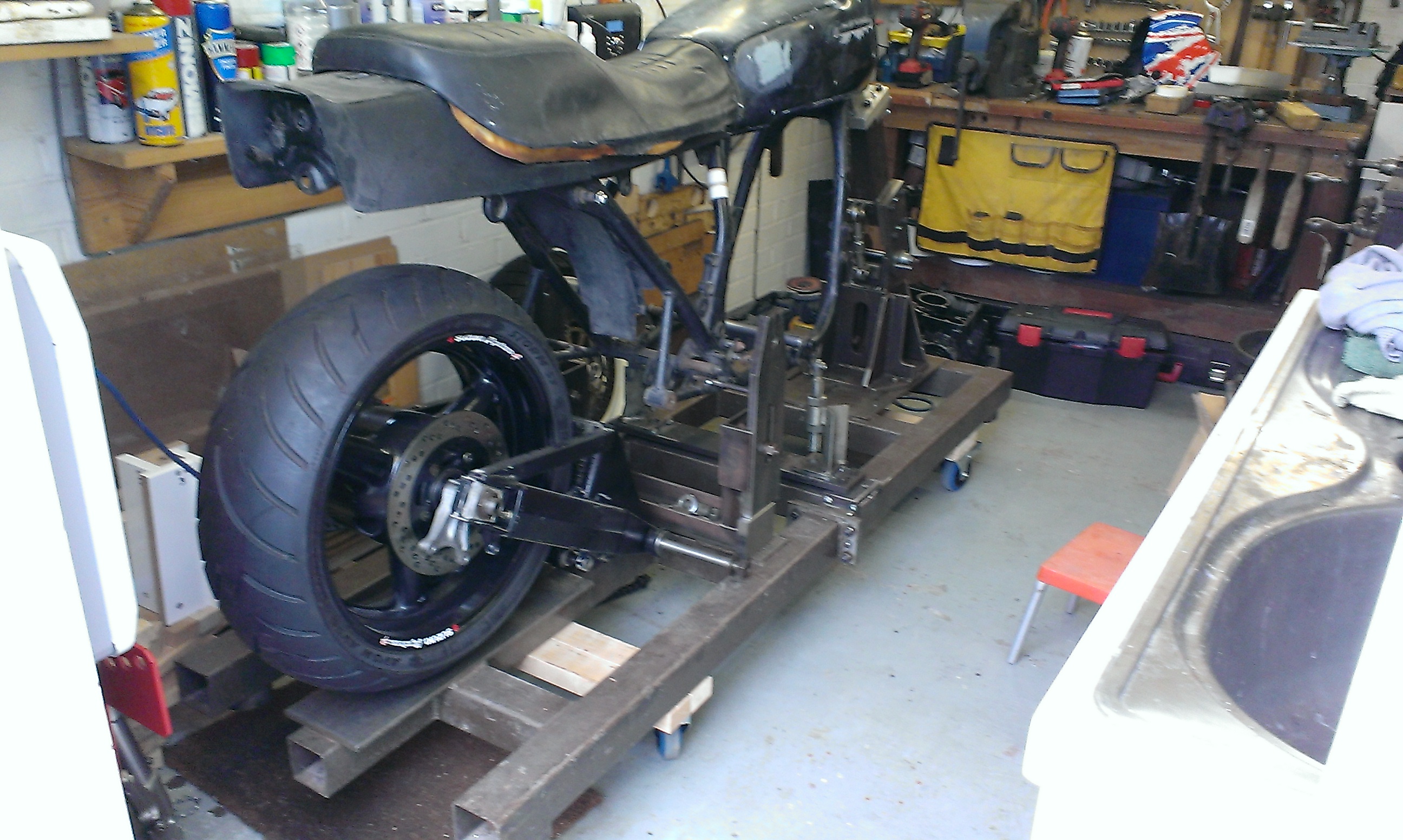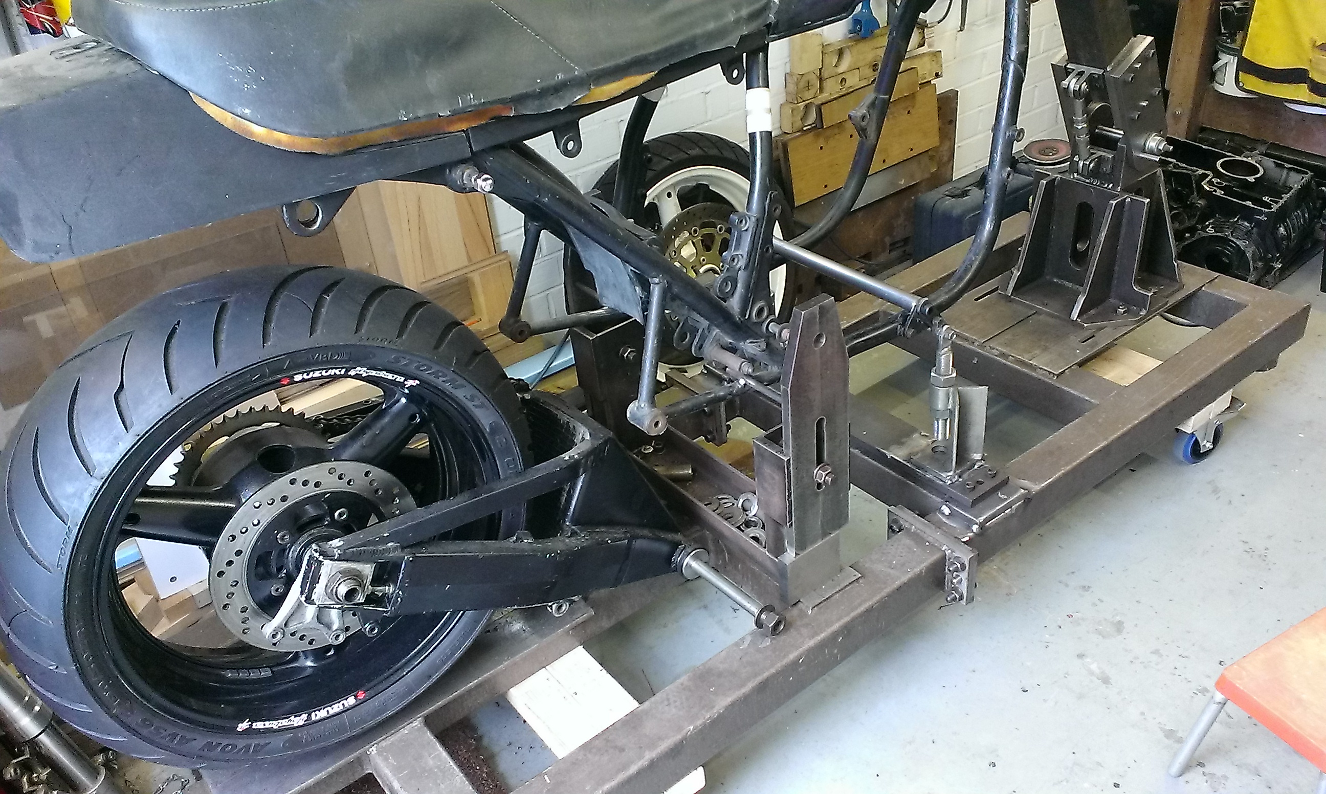 I'd already got a Suzuki GSXR USD front end I'd picked up a while back for the purpose of uprating the Zed and I'm thinking what about the rear end. May be GSXR or R1 would give better braking and suspension with a nice fat back tyre.