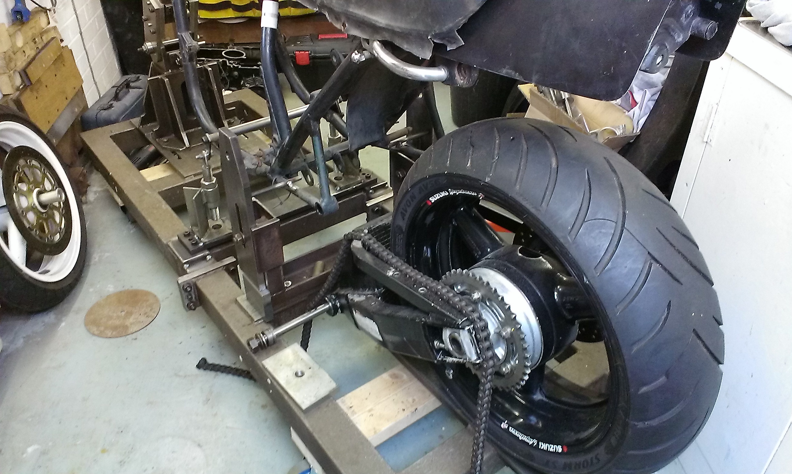 There was loads of 'busa stuff out there. Pretty soon I'd got all the rear end. Wheel, Swing arm, shocker and linkage, brake calliper the lot.