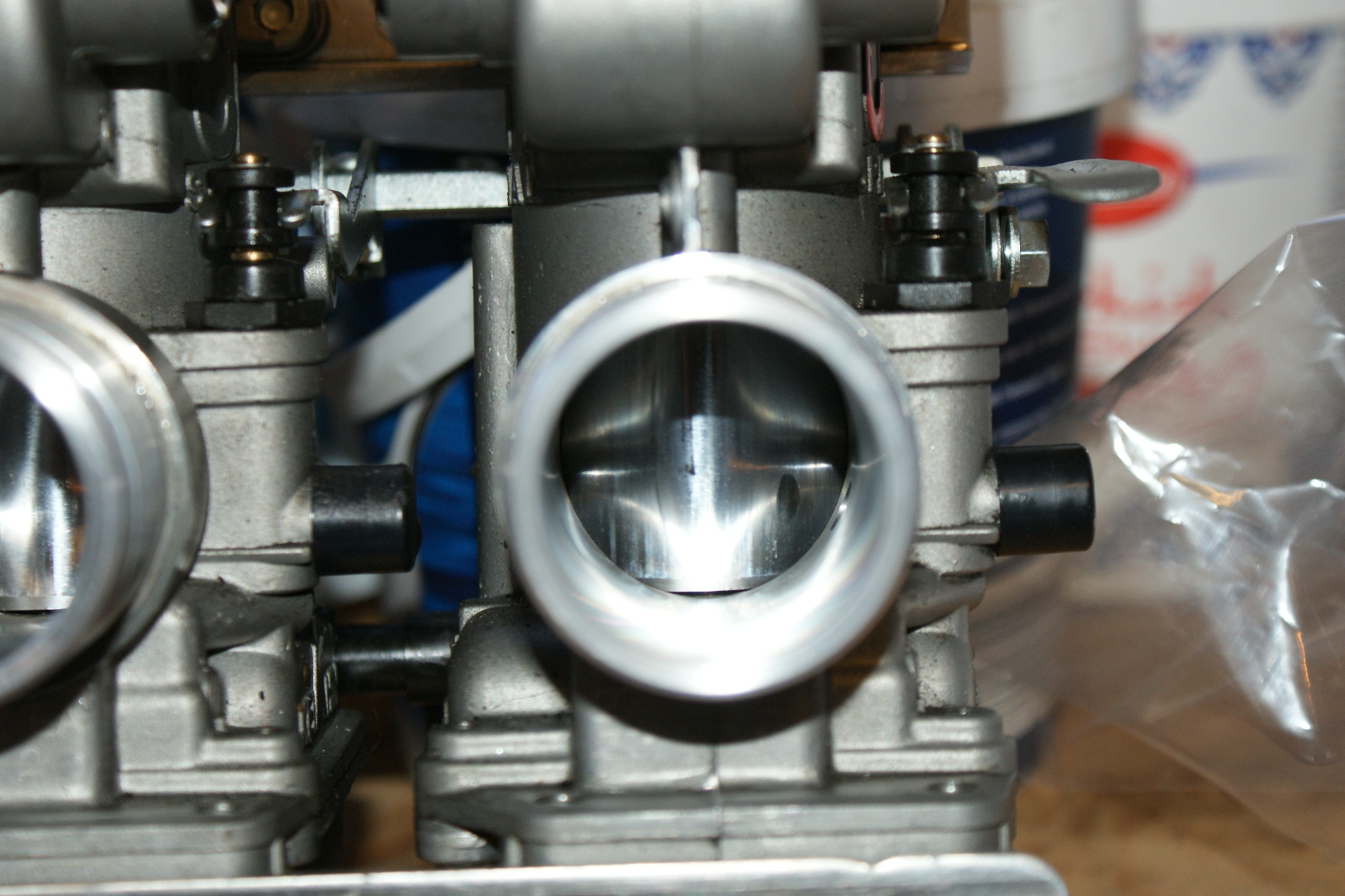 I designed some inlet pieces for the CR carbs which cam without any fitted as P1 only had Suzuki rubbers left in their cupboard. Got them CNC'd and a variety of o-rings to see if i can fit and seal. I had to cut a releif in the threaded ends so the thread would bottom out once in the carb.