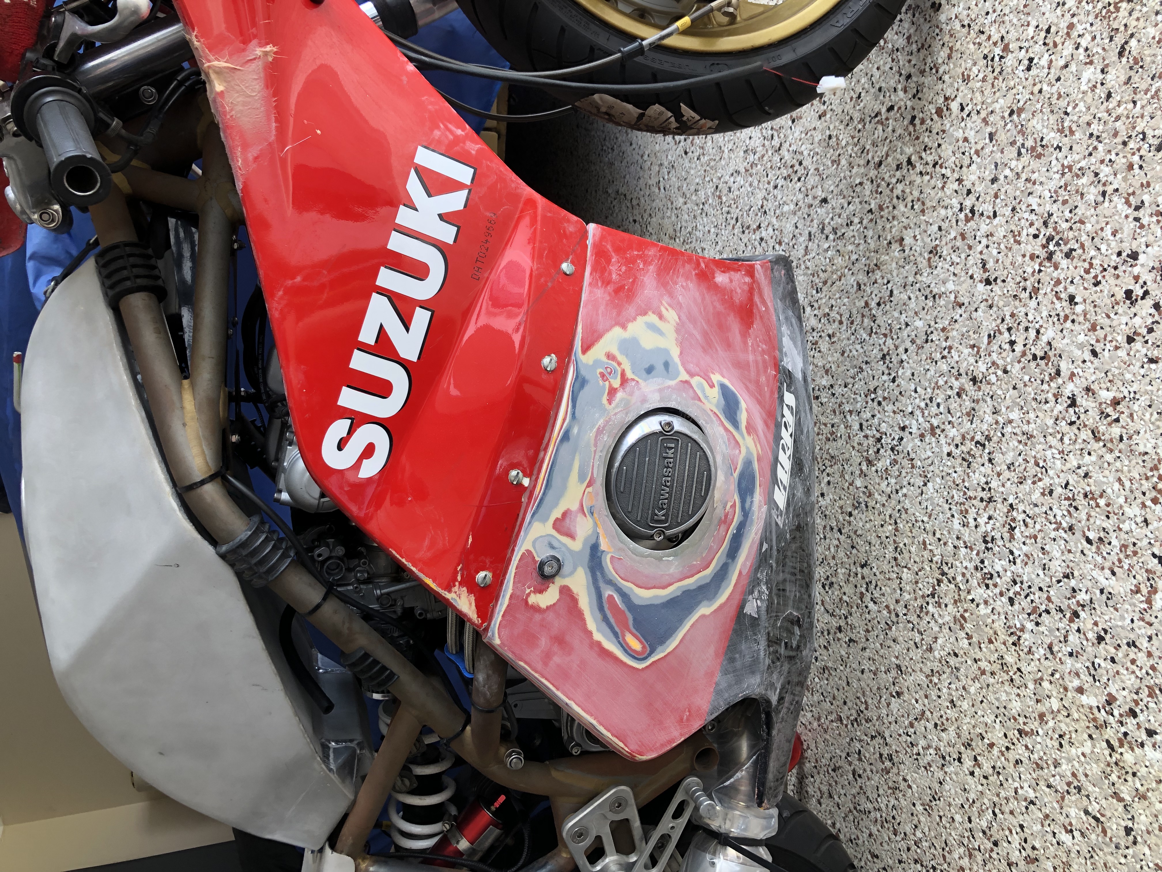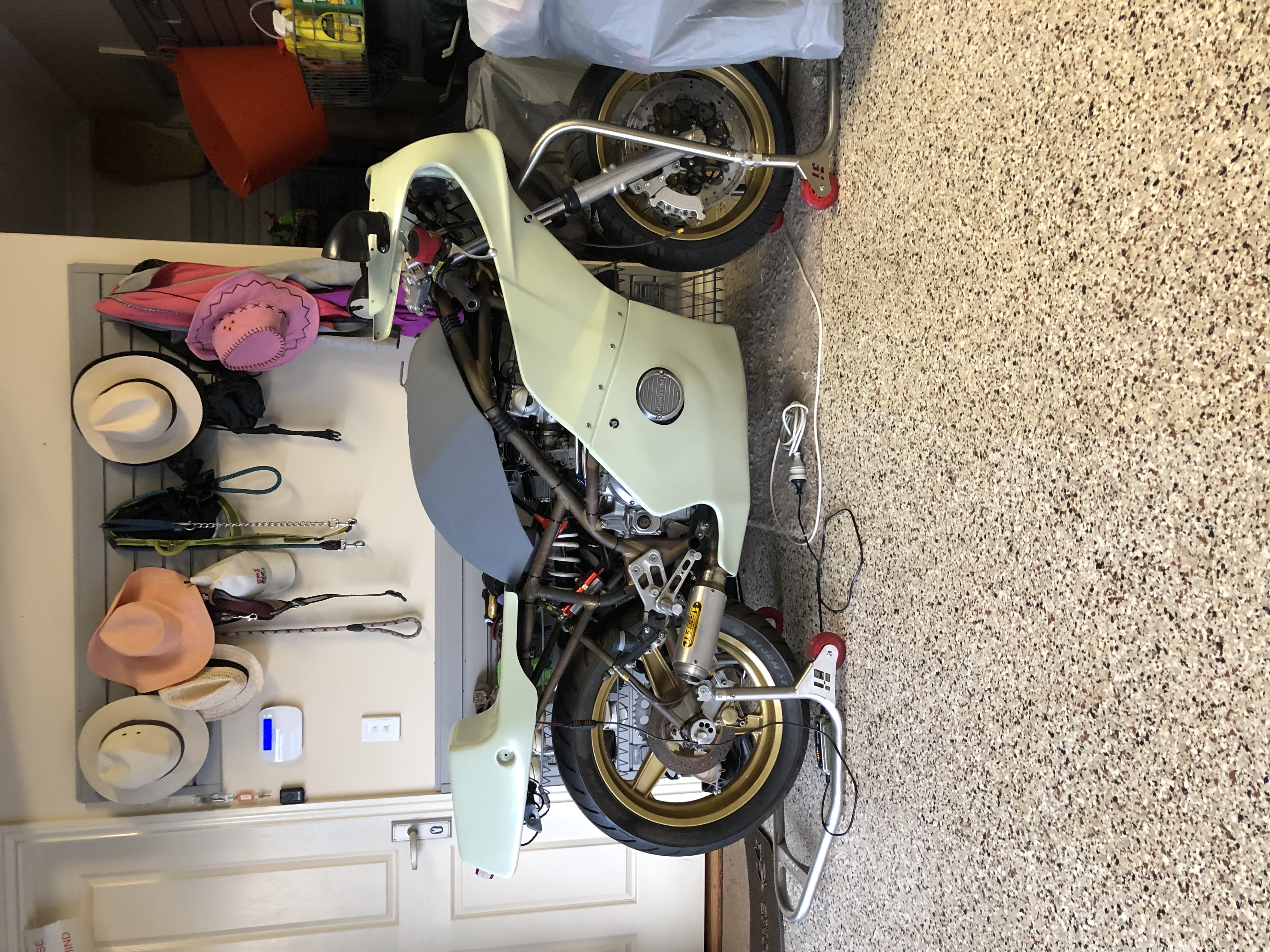 Paintwork has now been finished, went with the Zed Blue, white and gold stripes with the bottom of the fairing being black. Really happy with how it has turned out.