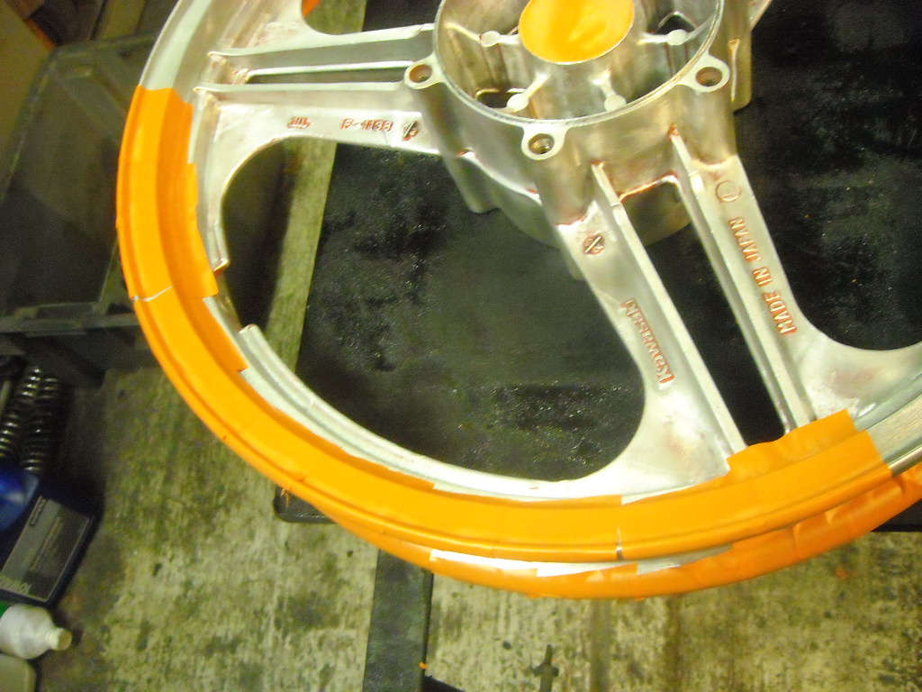 In this case it was hard to cut the tape at the edge. The cast wheels of an older Zed are easier to tape off !!!