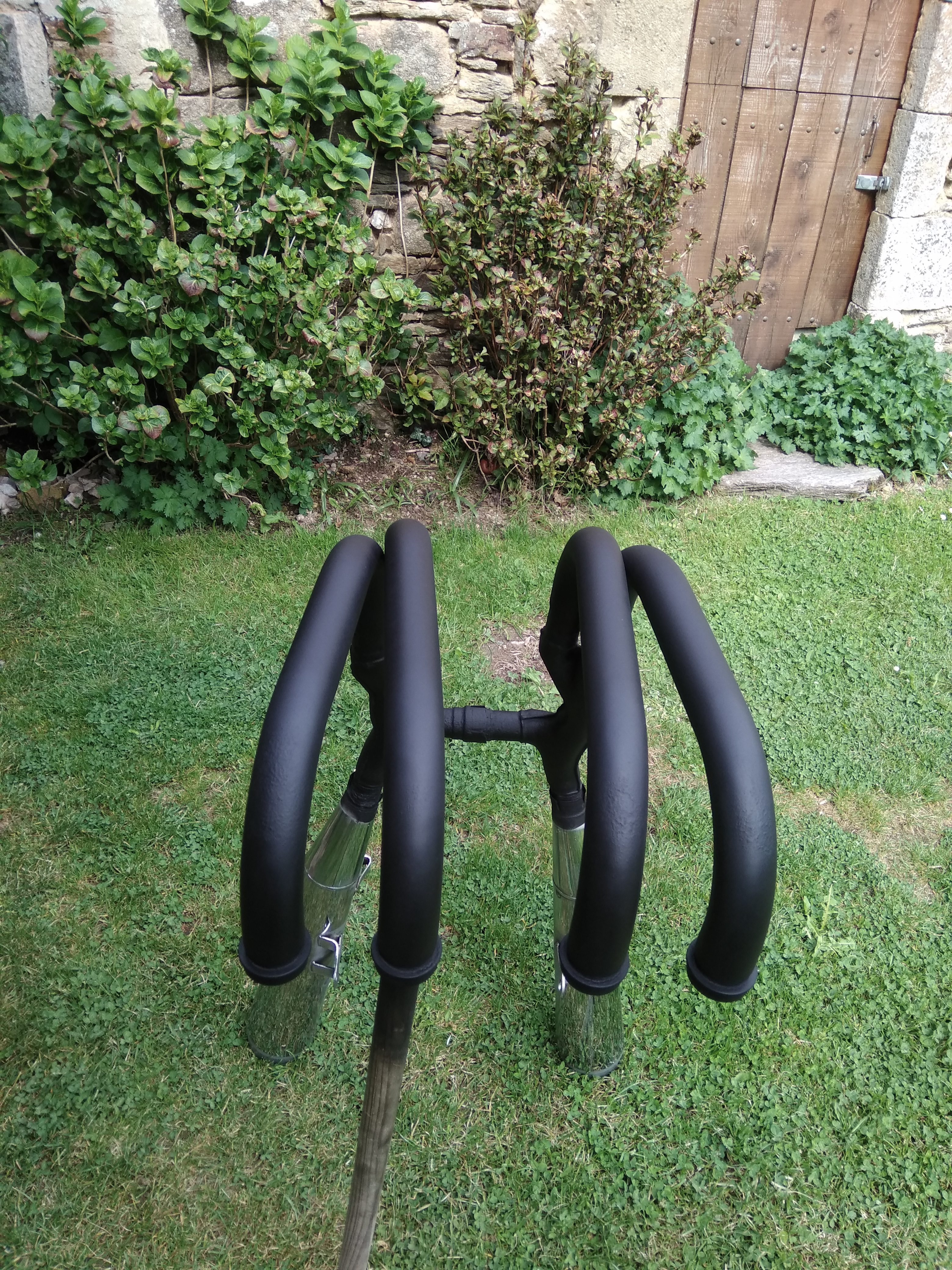 I think the matt black exhaust downpipes don't look too bad. Wished I'd fitted the chrome trims before the exhausts were fitted (which is a pain as they're not take apartable) the sidestand switch stops the left one from being retro fitted, so can stay of at the moment.