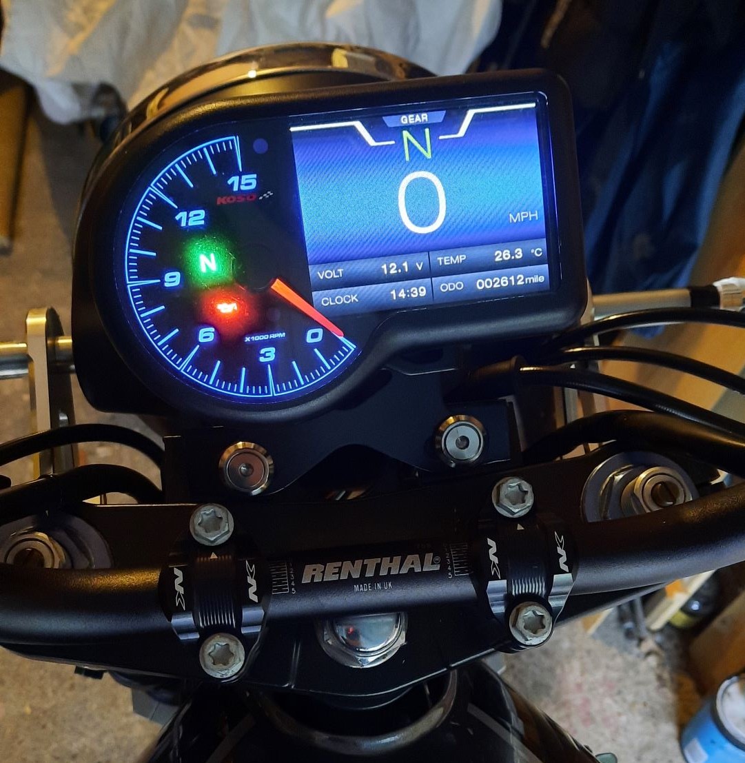 2. The home made instrument set-up has now been replaced with a Koso RX-3 TFT multifunction meter.