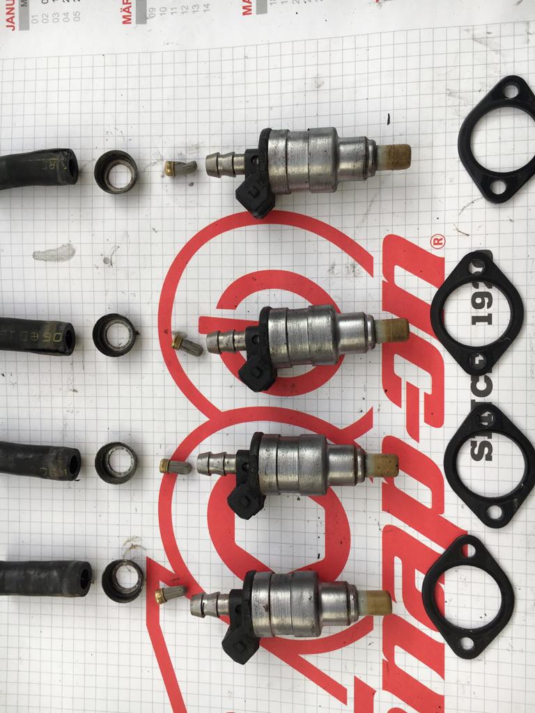 regarding injectors: I had mine (GPZ1100B2) cleaned and ASNU tested to make sure they all do the same. They got new filters and fuel line together with those black holders.