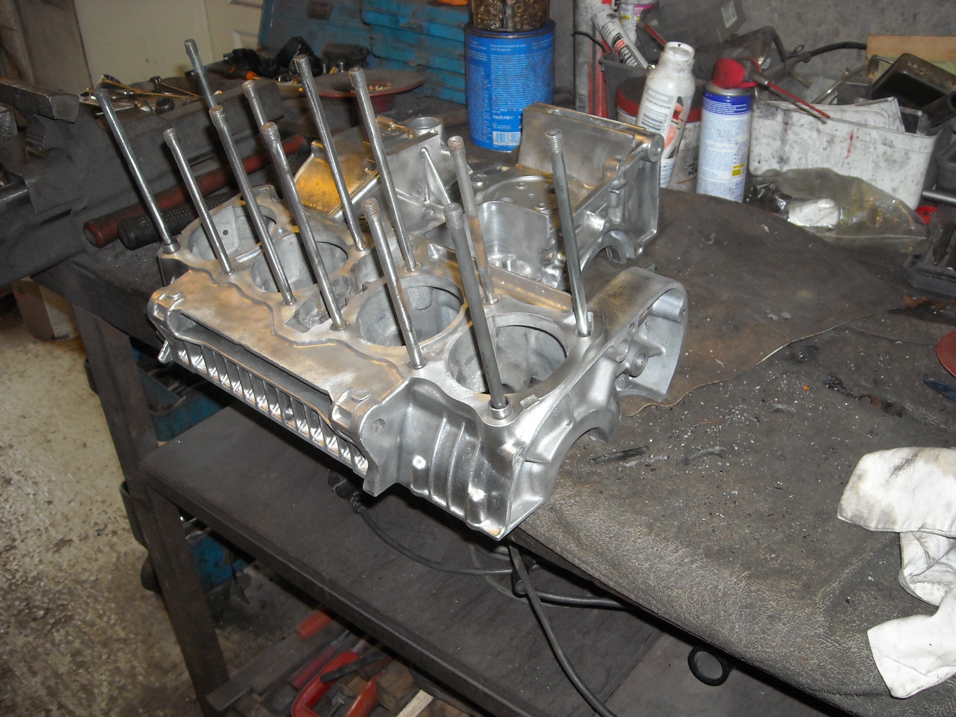 The upper cranckcase is almost clean and the studs are almost ready to be painted, just a little more rust to remove.